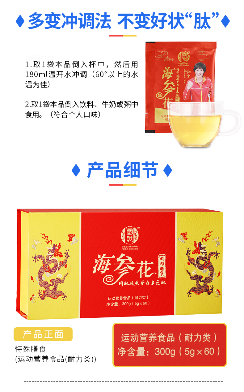 国肽海参花胶原蛋白多元肽 300g特殊膳食 国肽直营