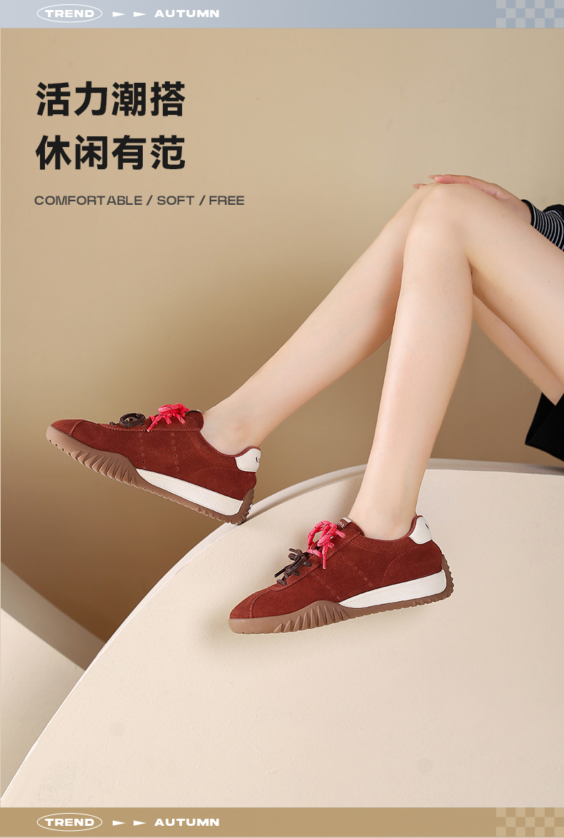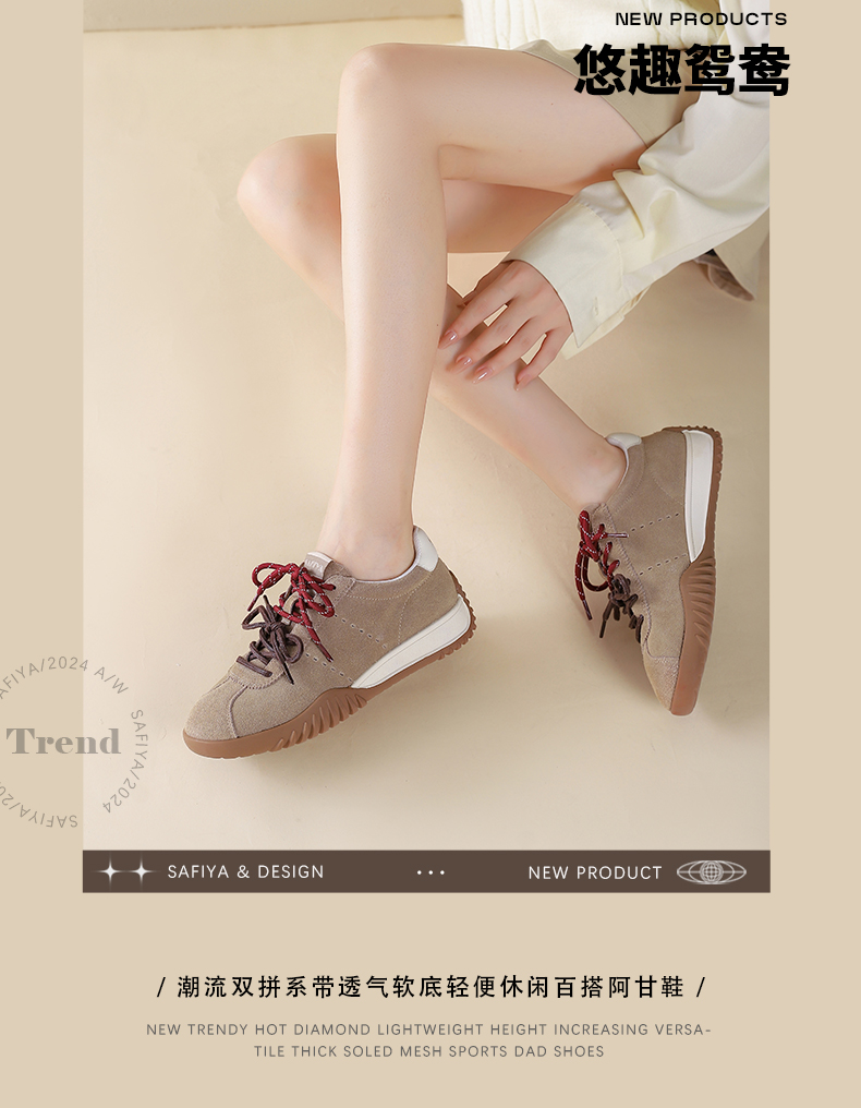 Safiya/索菲娅2024秋潮流双拼系带透气软底轻便休闲百搭阿甘鞋 SF43112437
