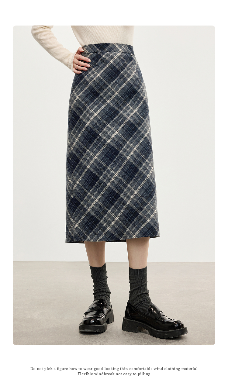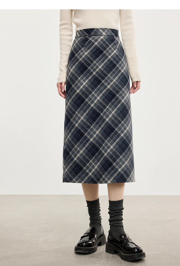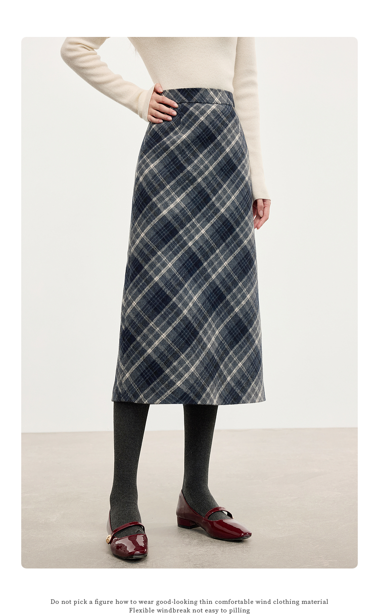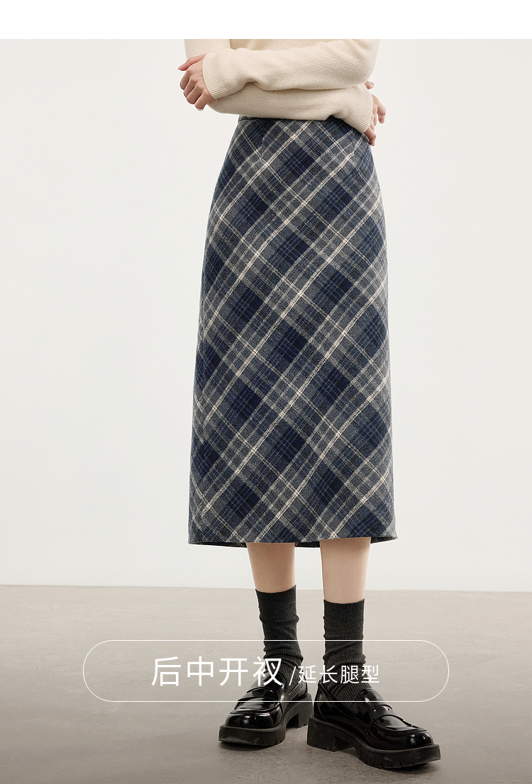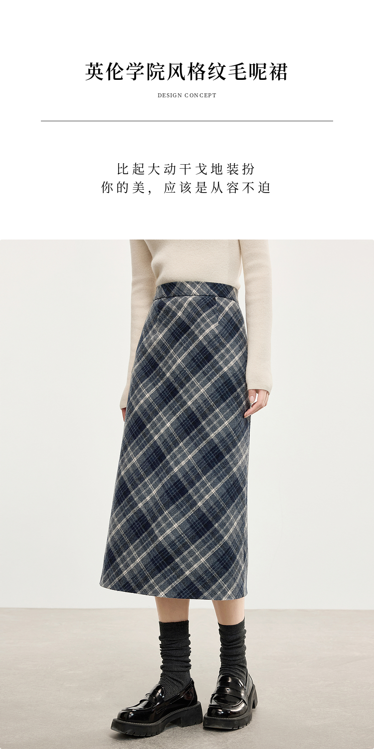 【专属特价】熙世界英伦风复古格子毛呢半身裙2025冬季新款中长包臀直筒裙子