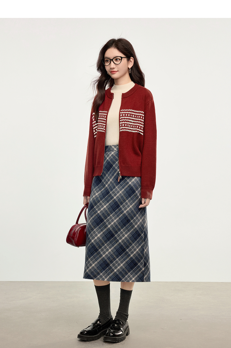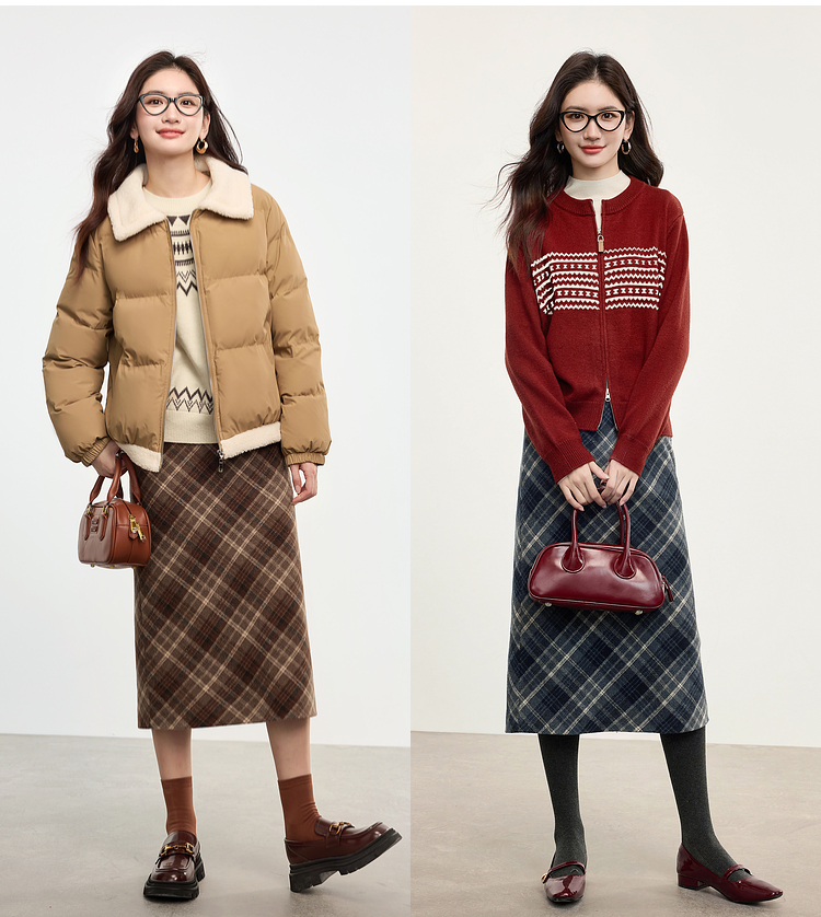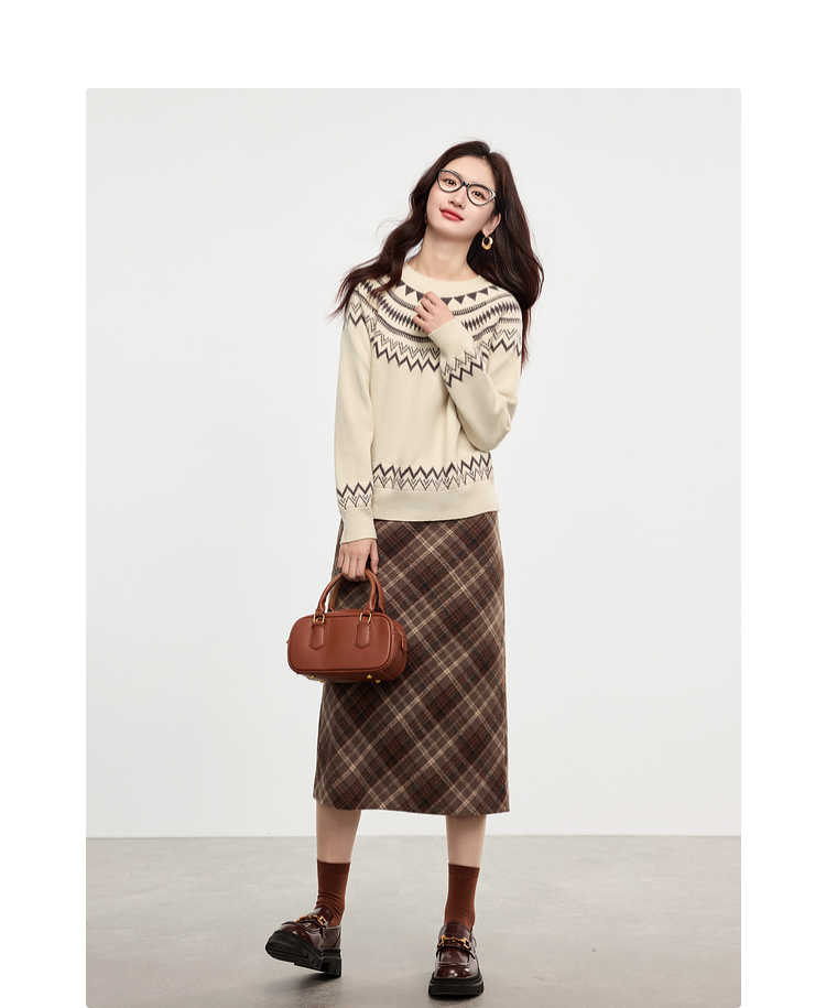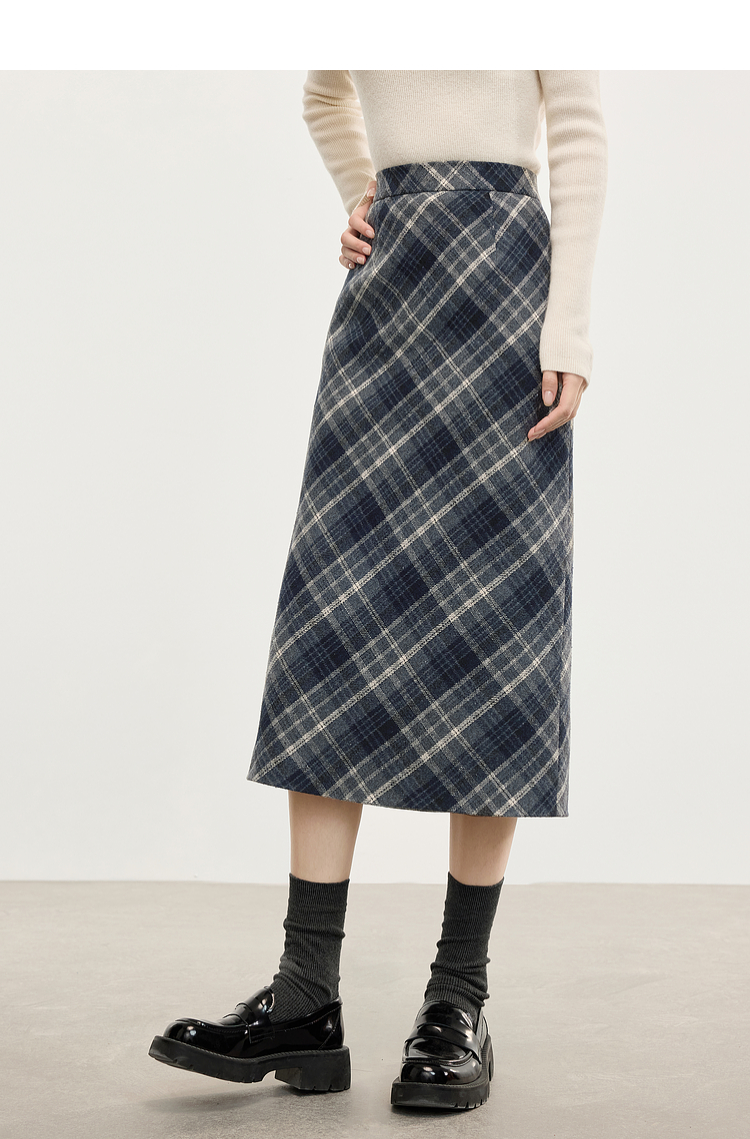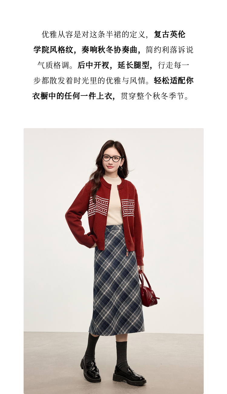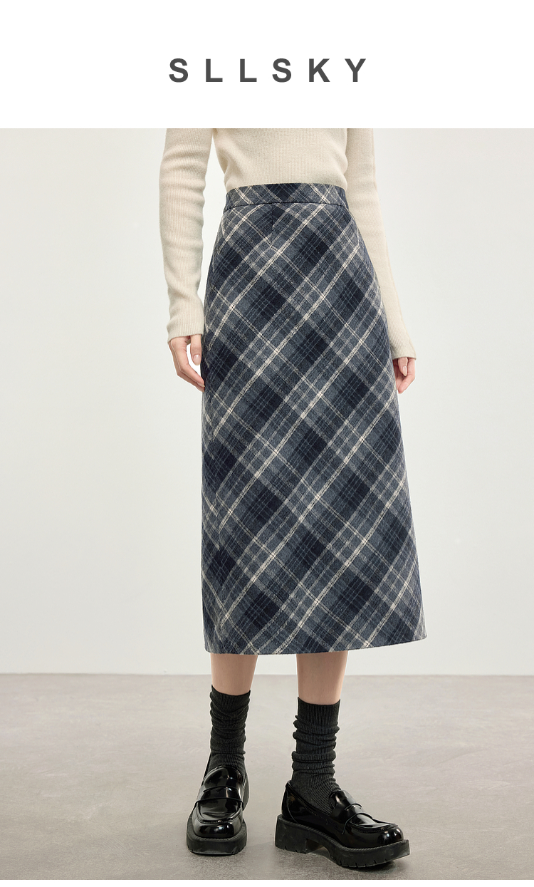 【专属特价】熙世界英伦风复古格子毛呢半身裙2025冬季新款中长包臀直筒裙子