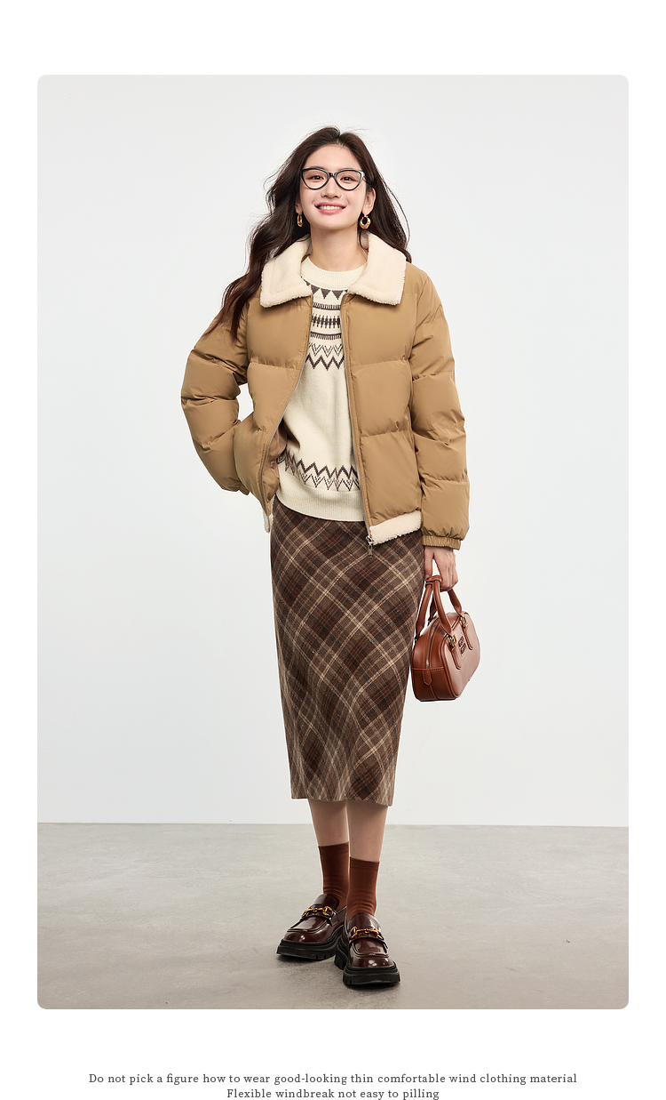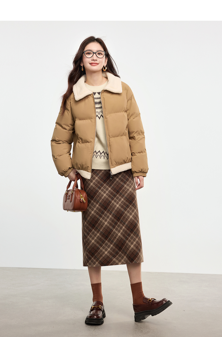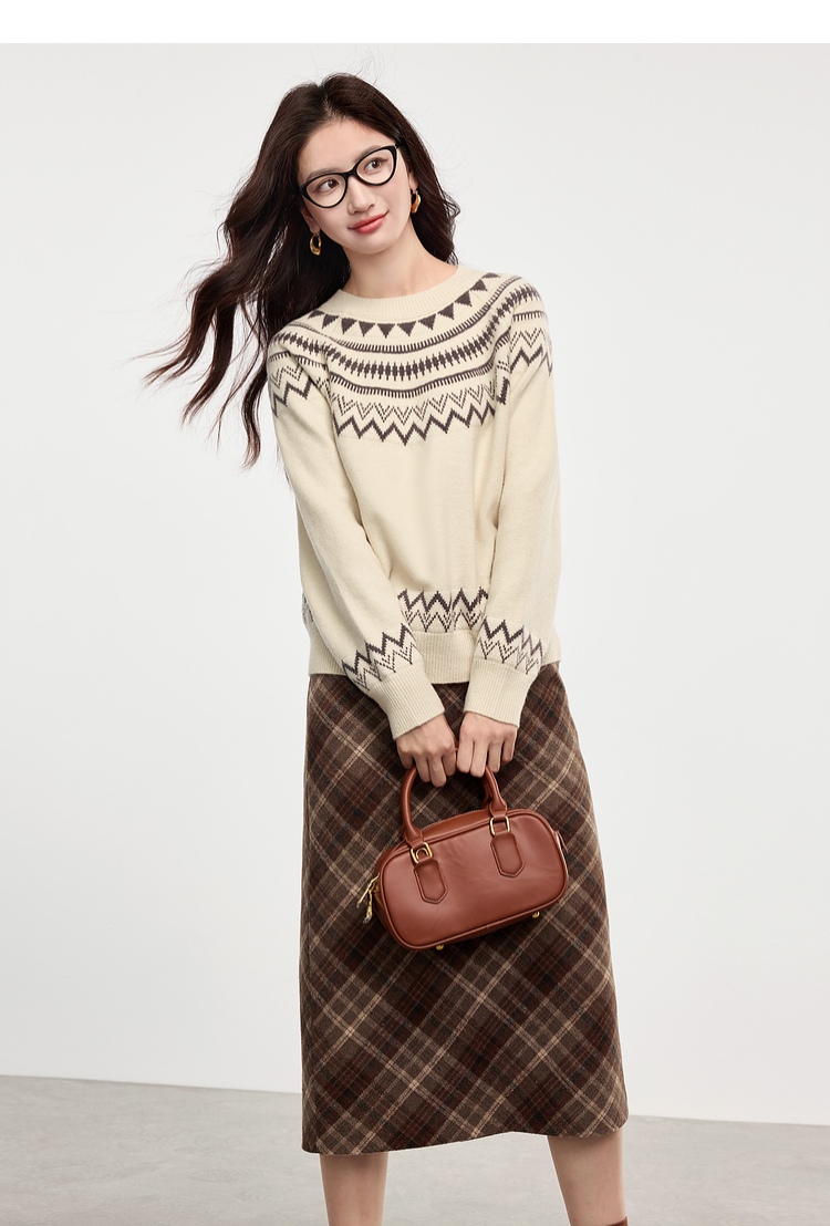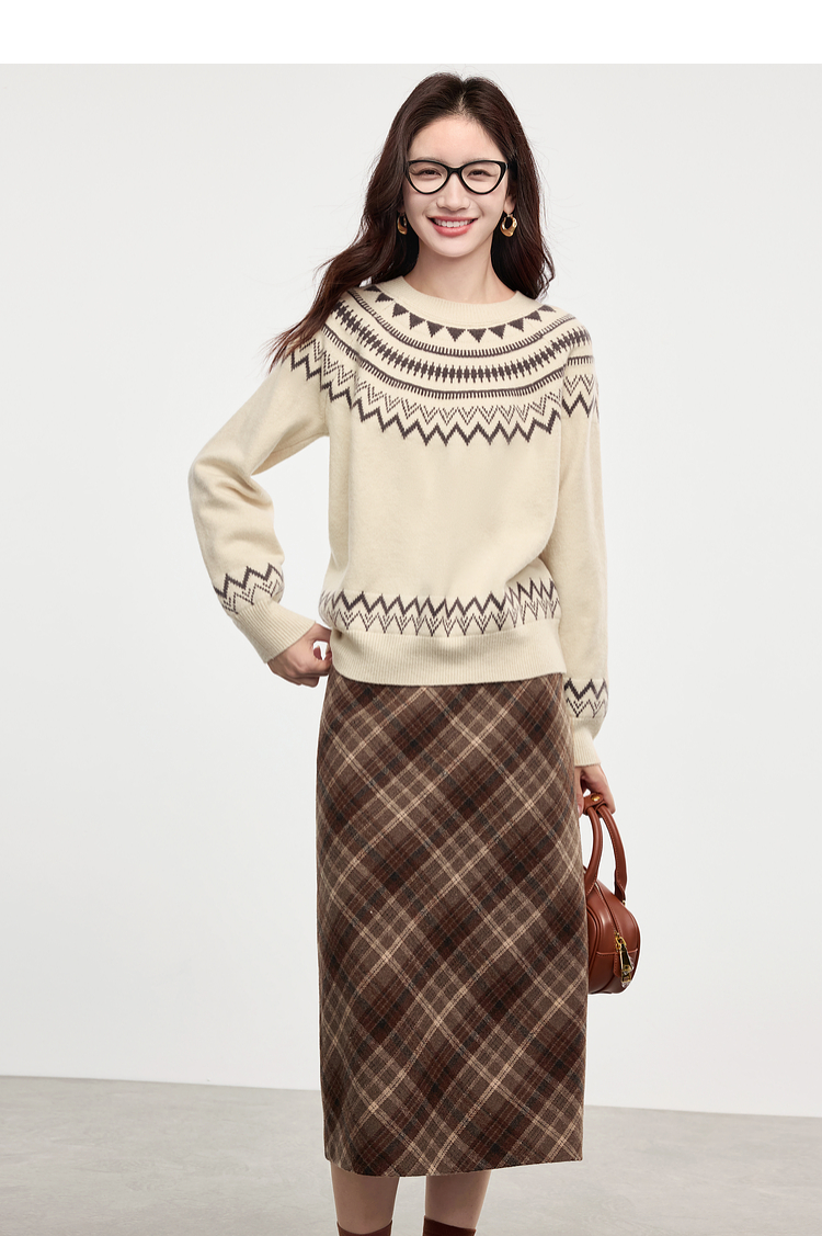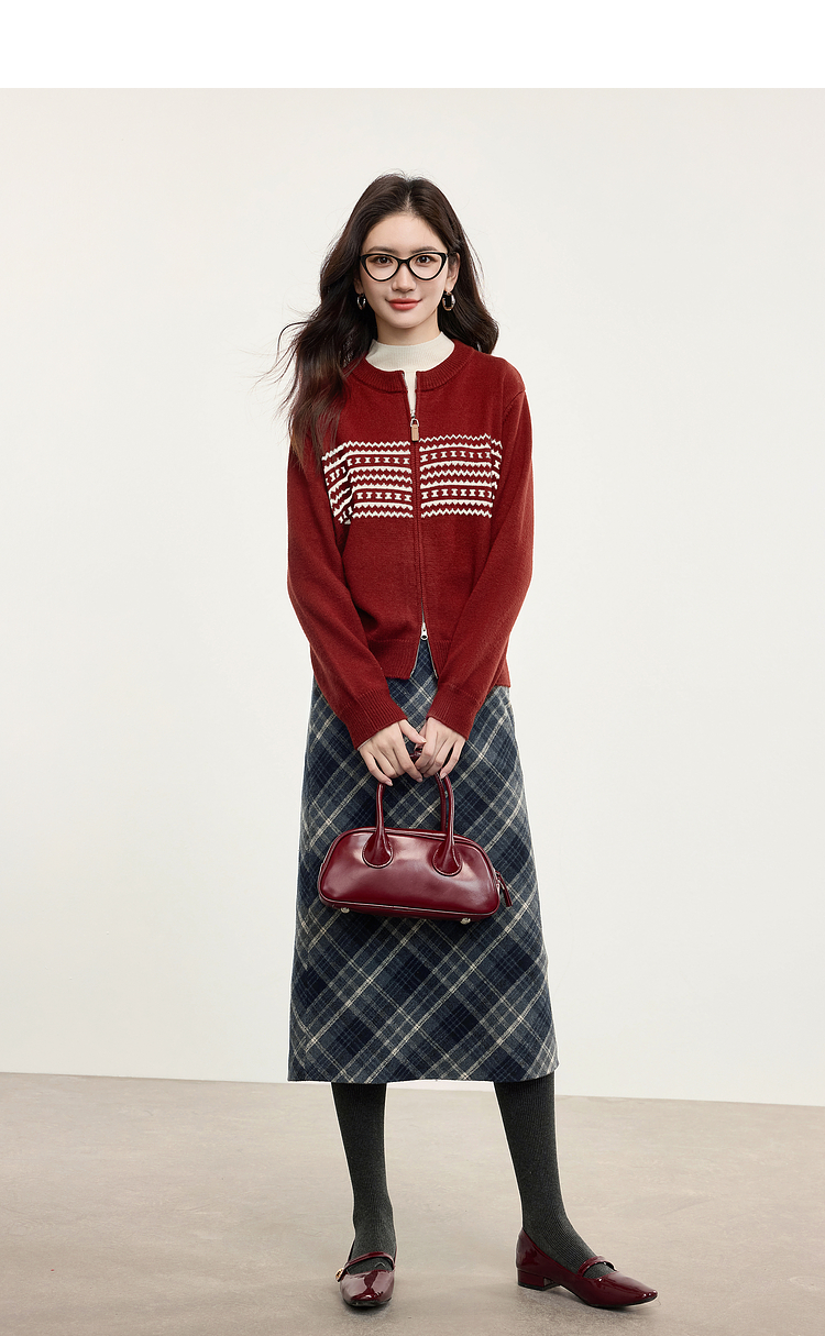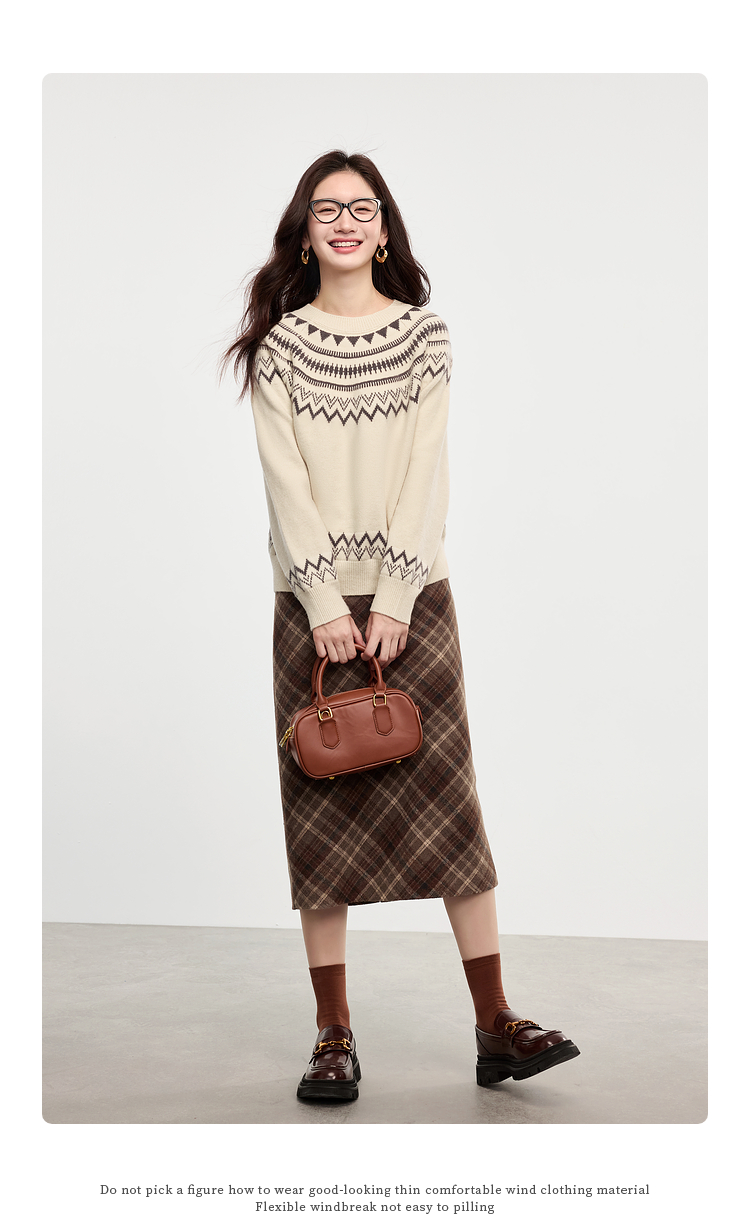 【专属特价】熙世界英伦风复古格子毛呢半身裙2025冬季新款中长包臀直筒裙子