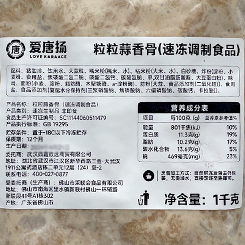 爱唐扬粒粒蒜香骨1kg蒜香排骨粒脆皮骨猪肋骨排骨商用油炸食材小吃腌制(顺丰发货)