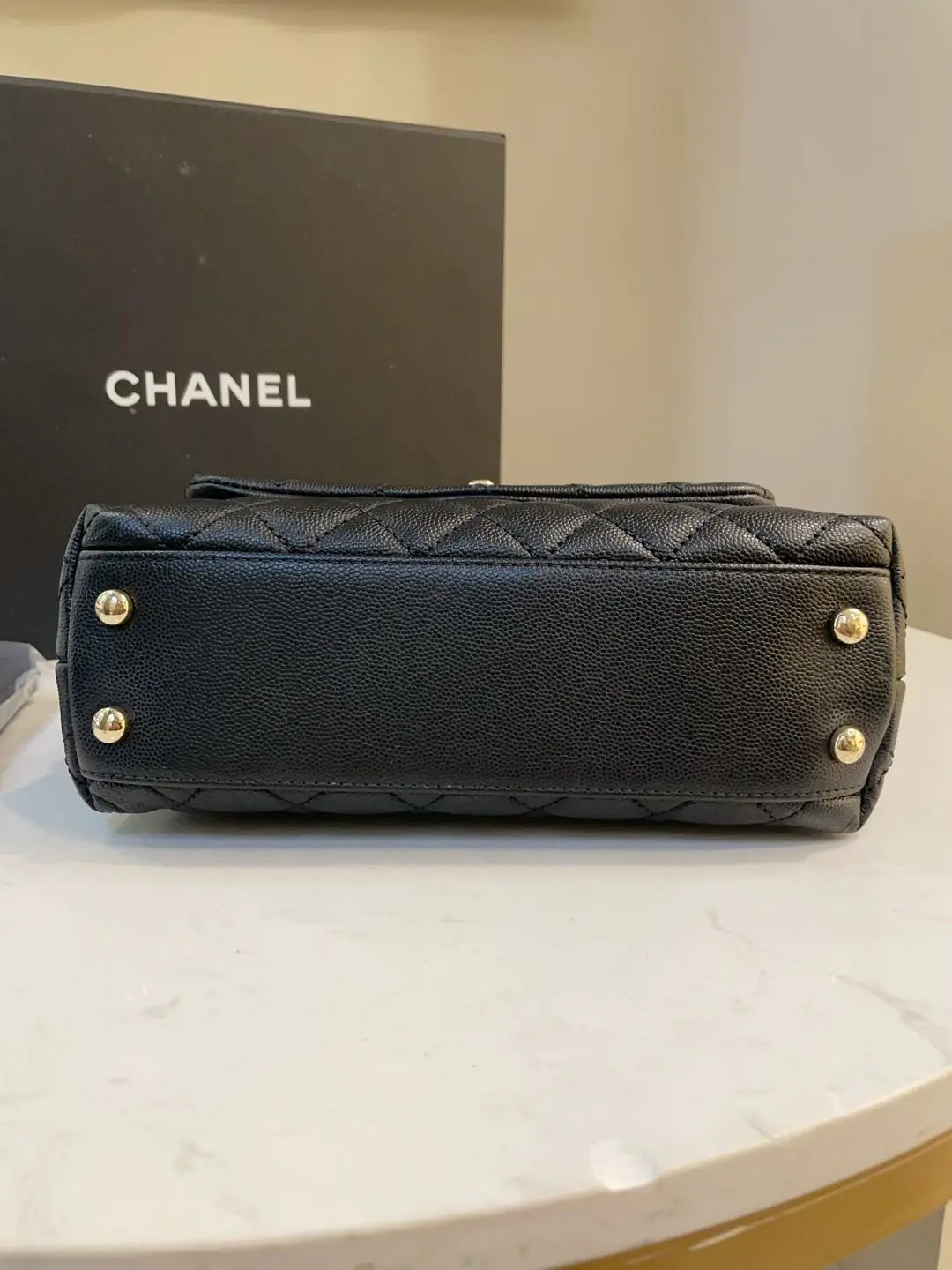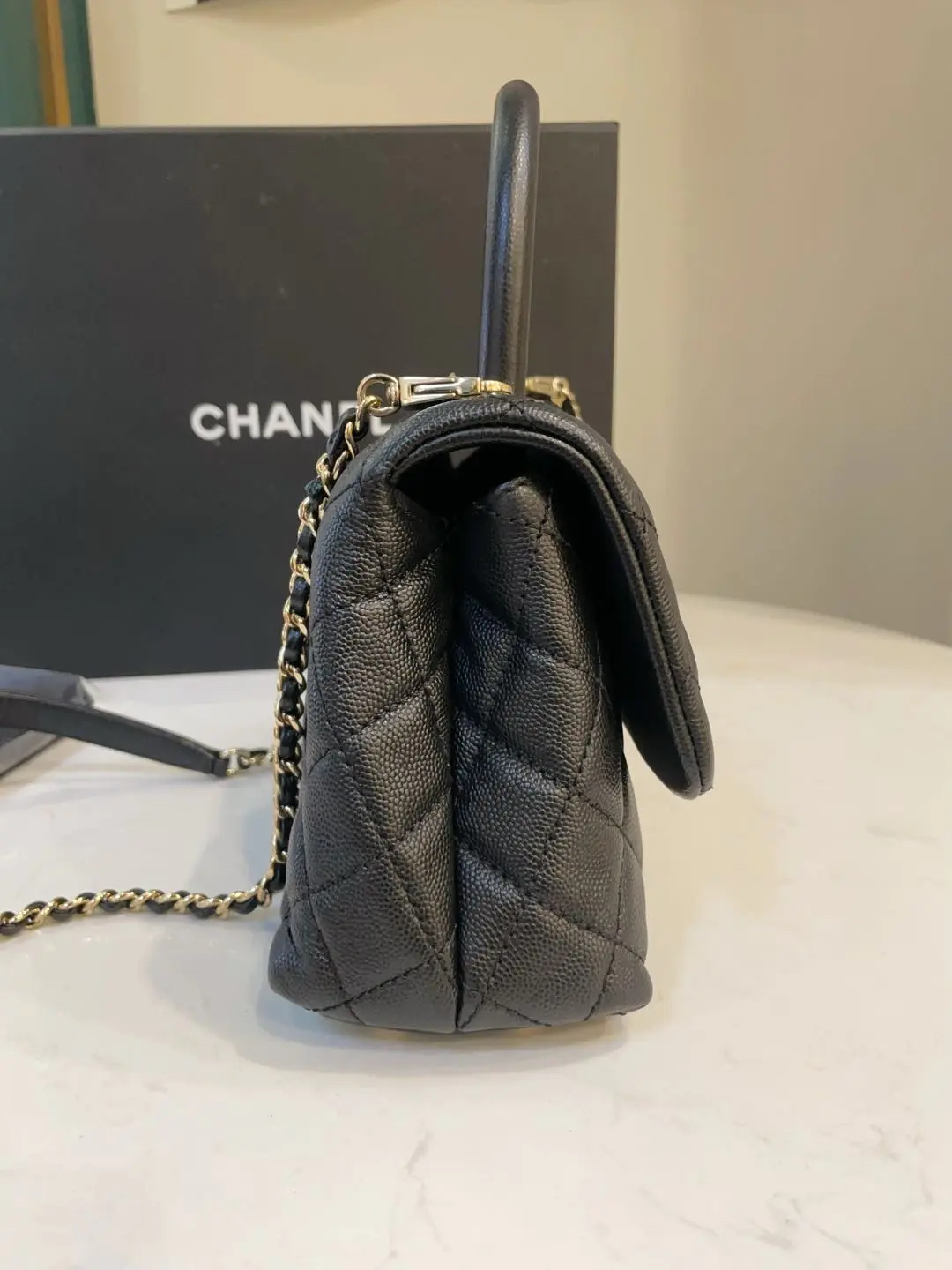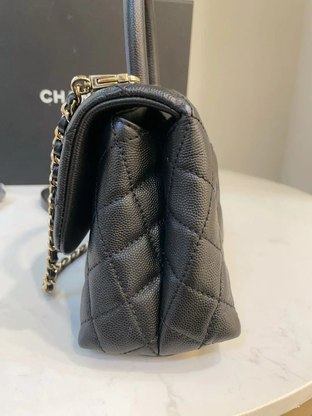 【商品详情】正品二手 Chanel cocohandle 荔枝纹牛皮 黑色 小号 斜挎包🦚 99新 24×13 镭射30开 大全套配件:镭射卡 肩带 防尘袋 盒子。整体状态特别好