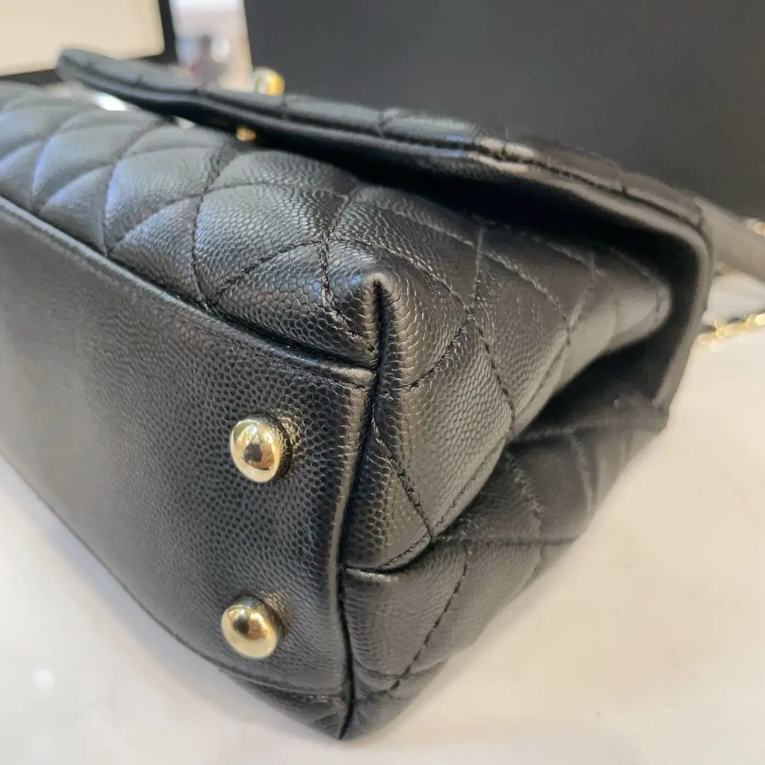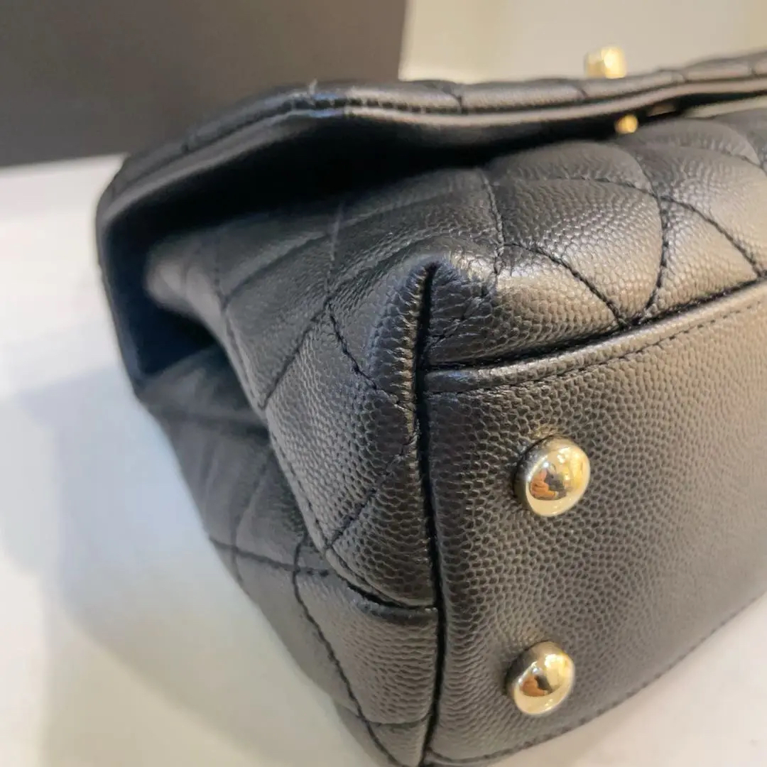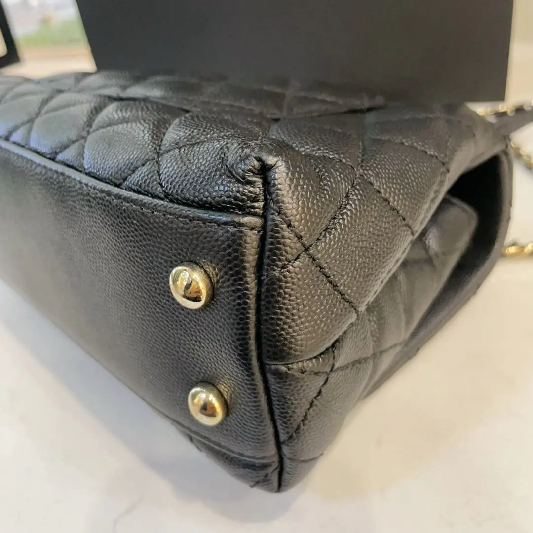 【商品详情】正品二手 Chanel cocohandle 荔枝纹牛皮 黑色 小号 斜挎包🦚 99新 24×13 镭射30开 大全套配件:镭射卡 肩带 防尘袋 盒子。整体状态特别好