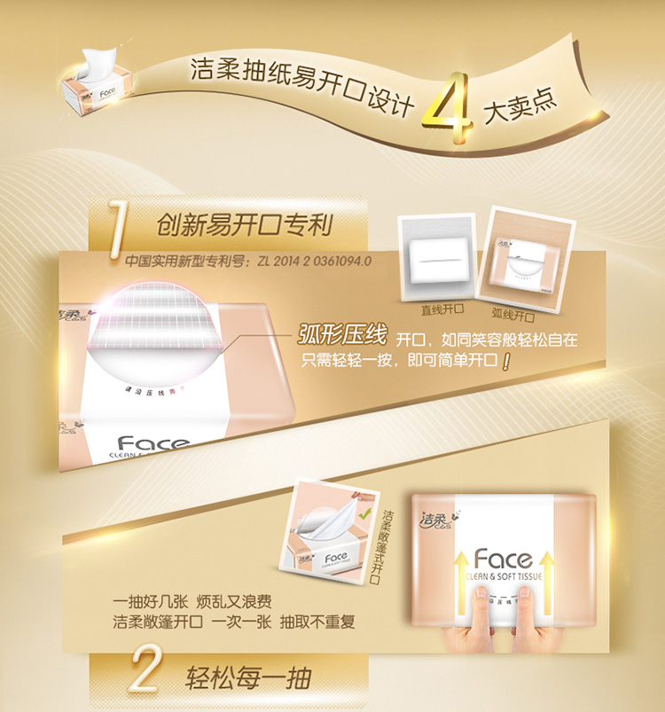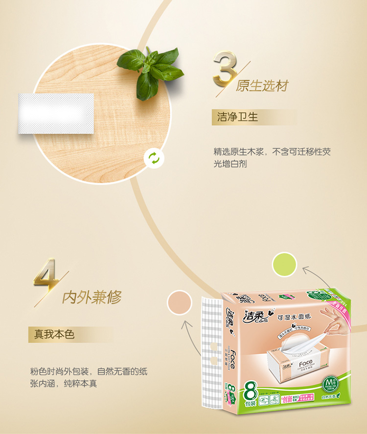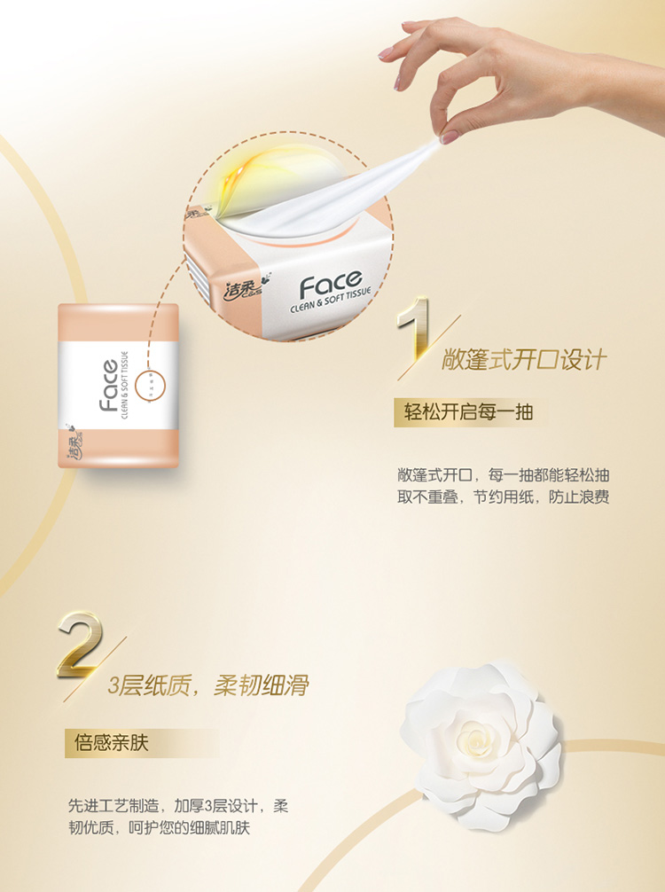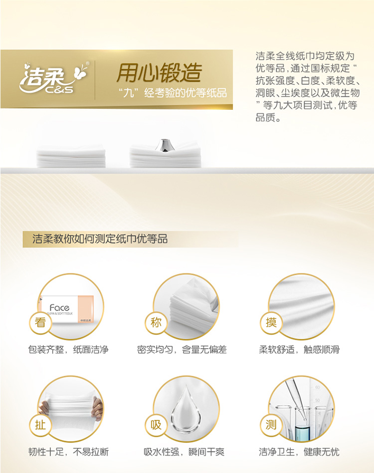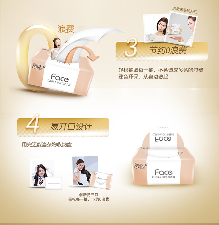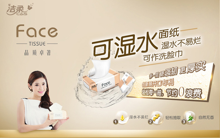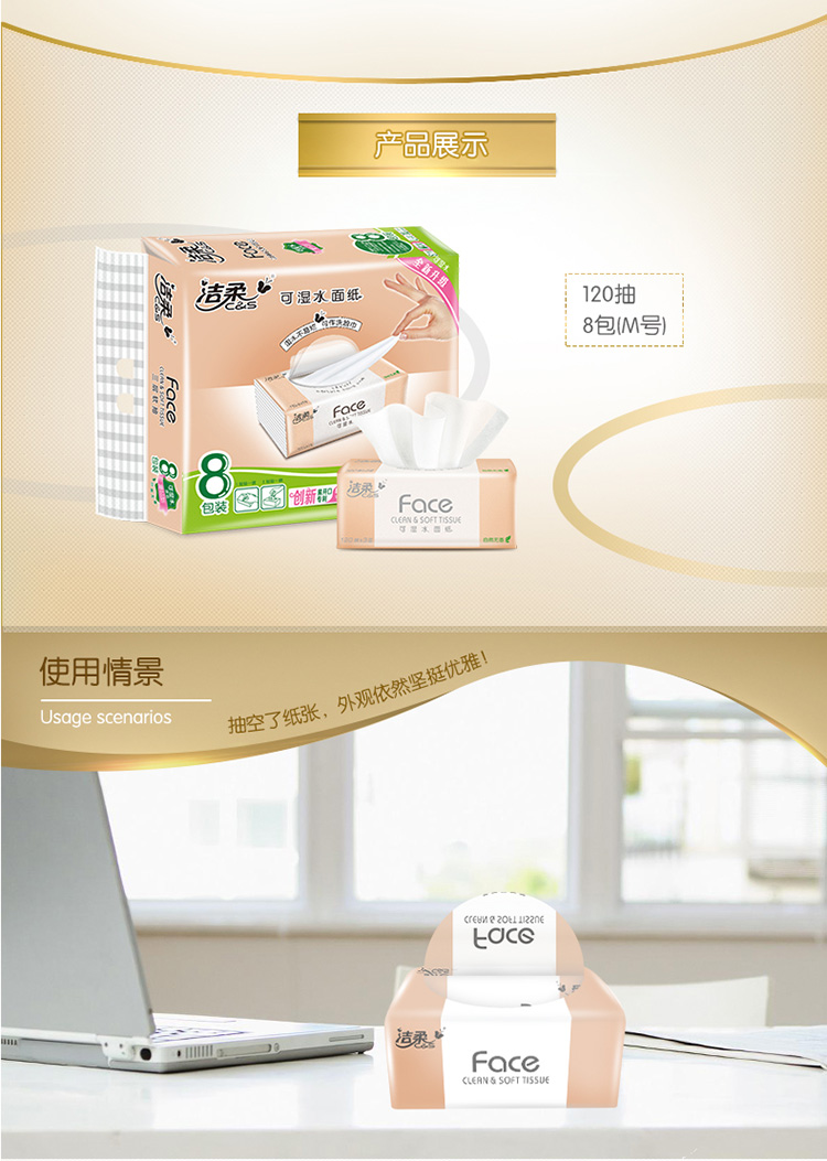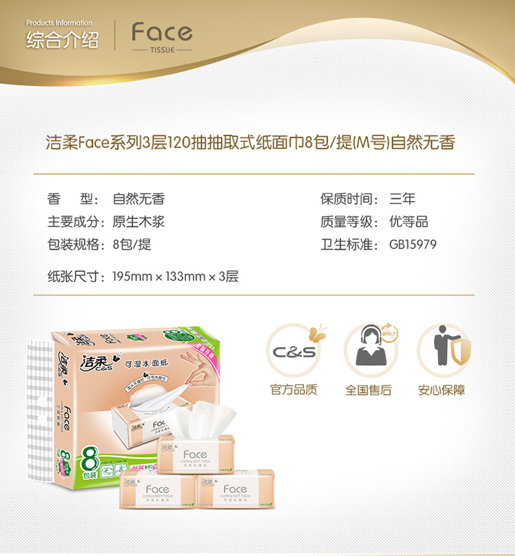 洁柔(C&S)抽纸 粉Face 柔韧3层120抽面巾纸*8包 无香(M号纸巾 面子系列可湿水)