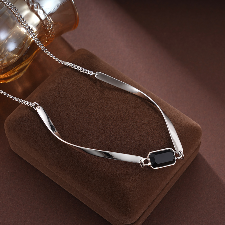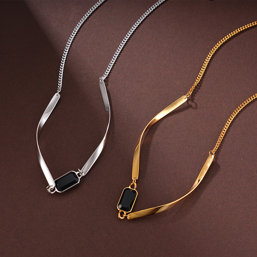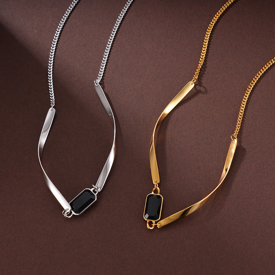【寓意】:项链以莫比乌斯环为灵感,方形坠饰中心嵌有黑宝石,形成鲜明对比,寓意日夜相伴,永恒守护。