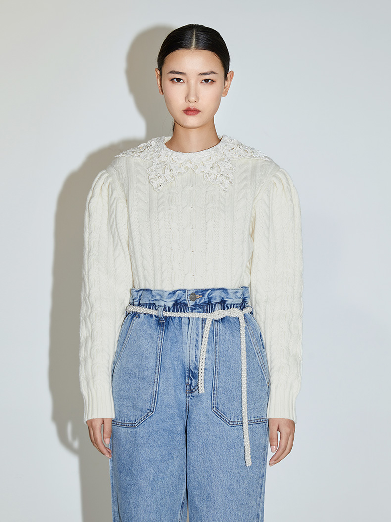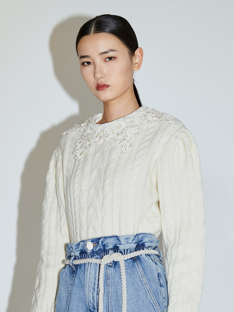 Miss Sixty2020冬季新款英国国家美术馆联名系列纯羊毛钉珠毛衣女604RJ2760000