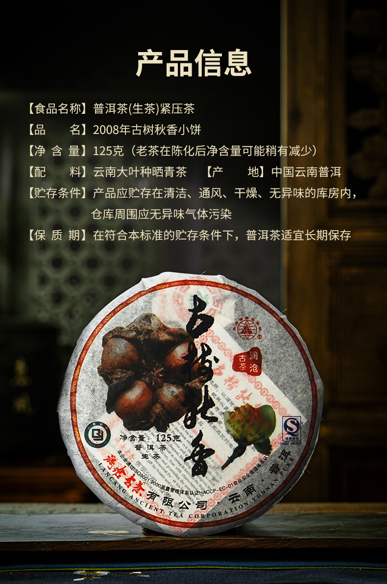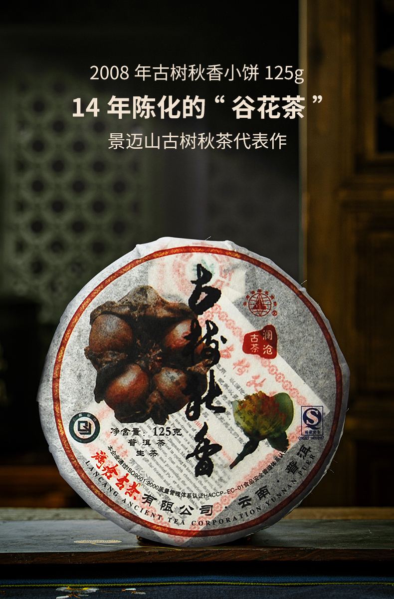 【积分兑换】澜沧古茶2008年古树秋香景迈古树普洱茶生茶秋茶小饼125g