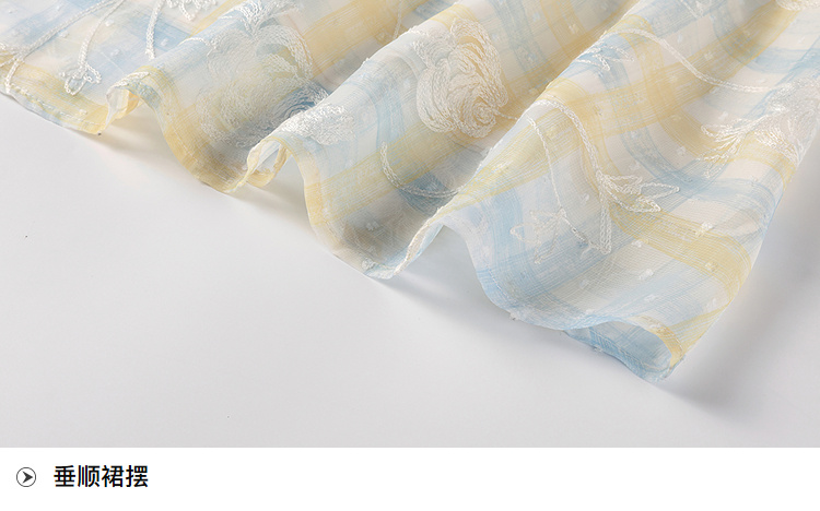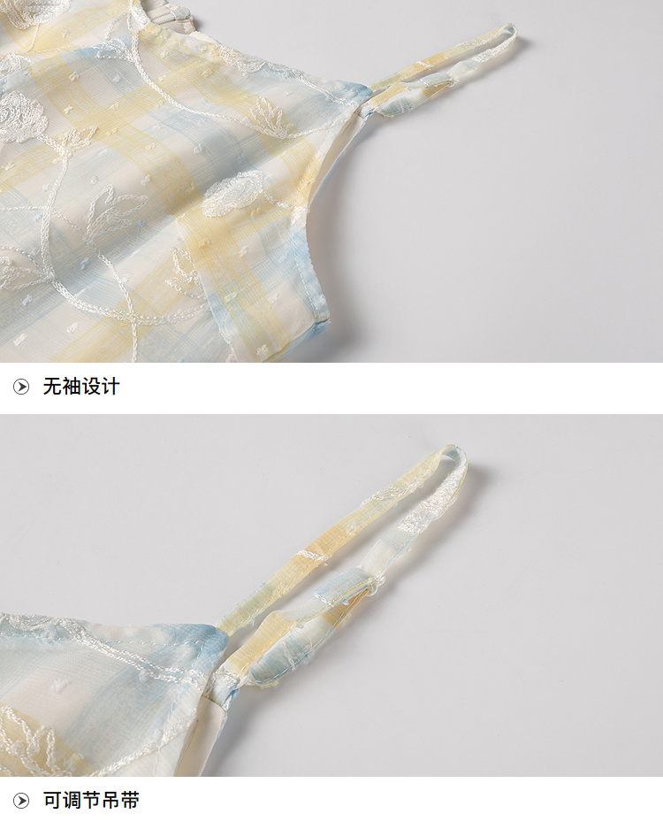 奢姿大码女装2026夏季胖妹妹温柔风抽绳针织开衫格纹吊带裙套装9862960059AB