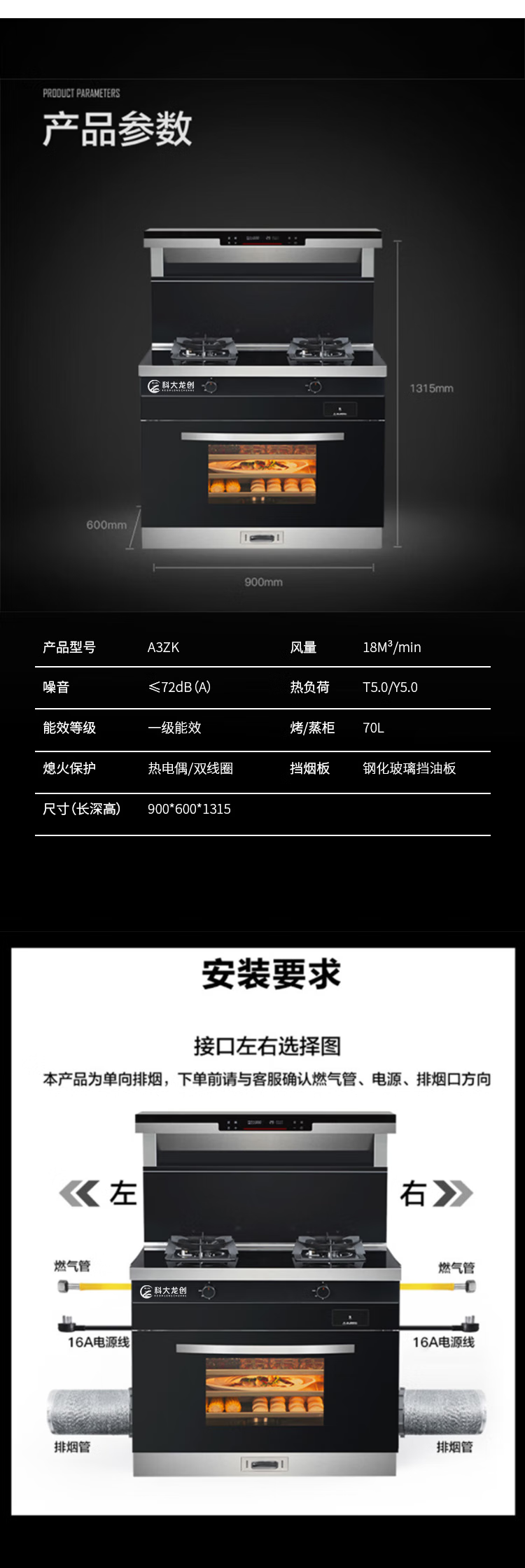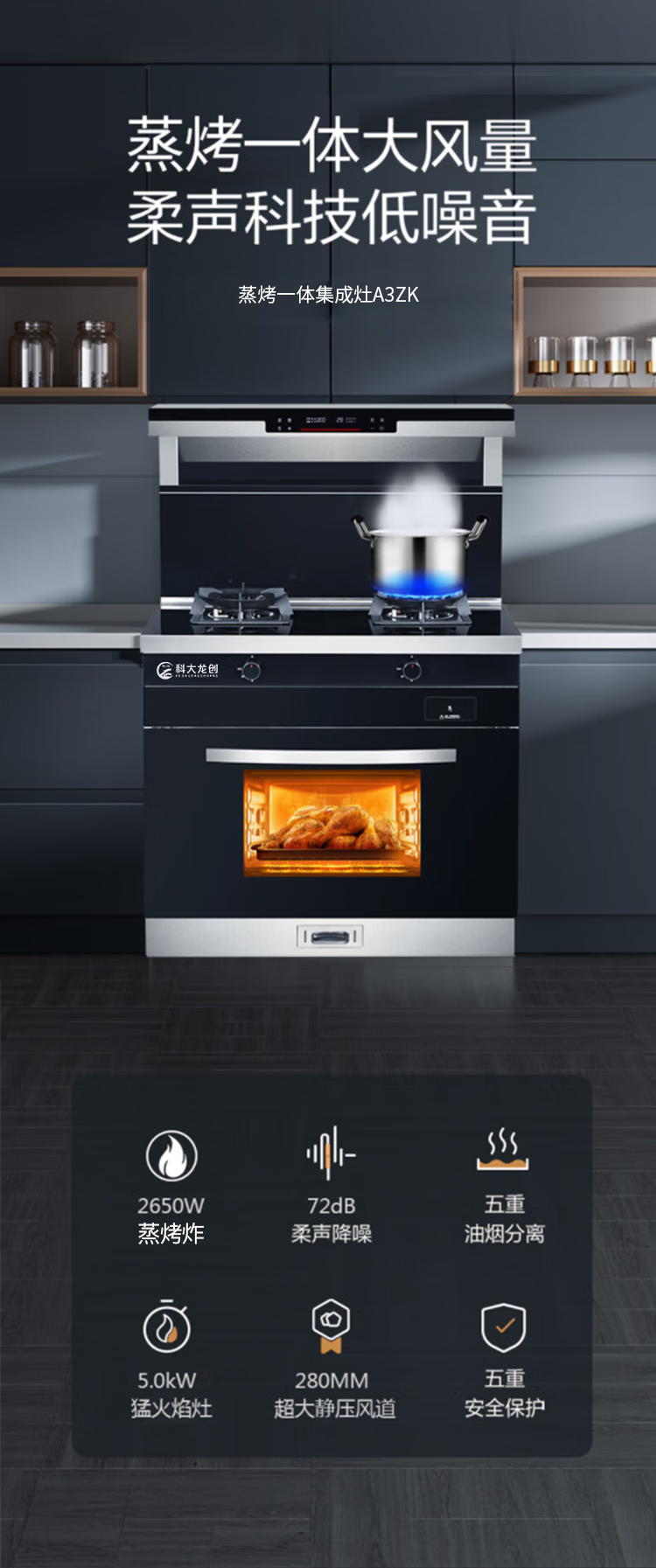 科大龙创智能集成灶KD-A3ZK 蒸烤一体 柔声低噪 多重安全防护 智能温度传感 不包安装 48小时发货