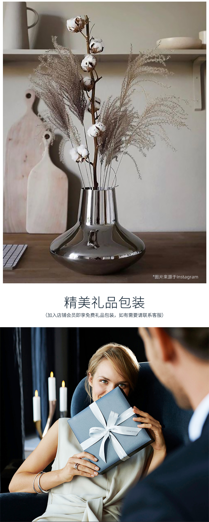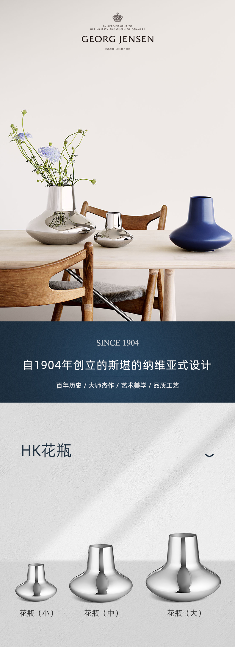 Georg Jensen乔治杰生北欧家居简约花瓶客厅餐桌摆件生日乔迁礼物