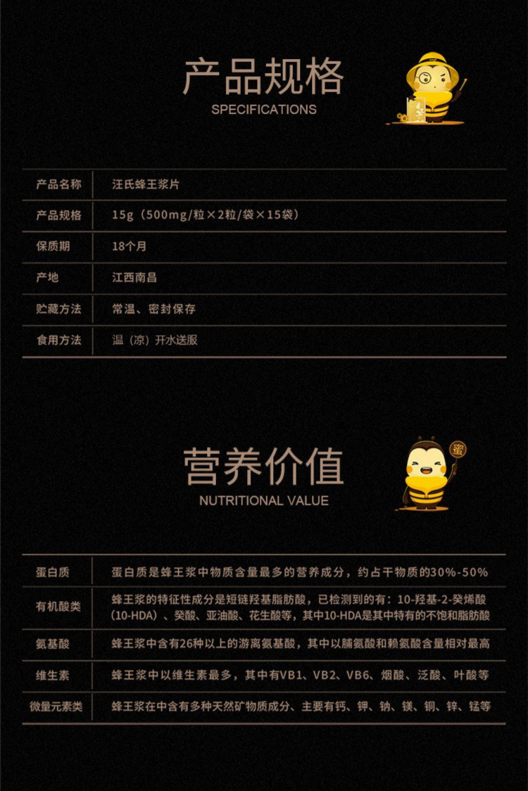 汪氏蜂蜜 蜂王浆片状制品 4.0促进睡眠