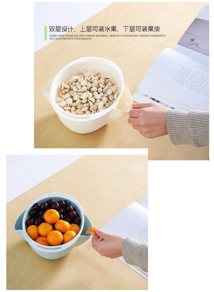 【双层可分离果盘】新年塑料懒人果盘 瓜子水果沥水盘创意家居用品
