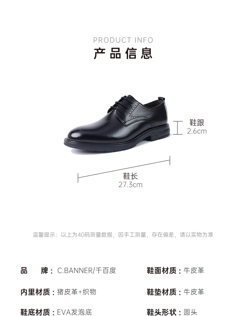 千百度通勤乐福鞋春季黑色小皮鞋中跟一脚蹬真皮正装单鞋A24132908