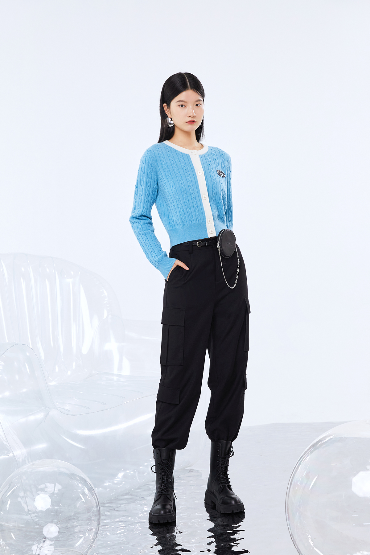 NEELLY纳俪商场同款高腰立体打褶西装裤显瘦束脚哈伦裤百搭休闲裤N22072H01036