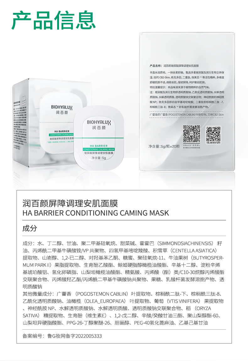 自营(润百颜)-屏障调理安肌面膜[5g/颗,20颗/盒]