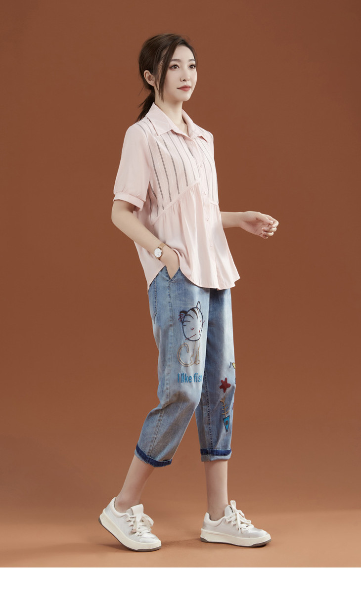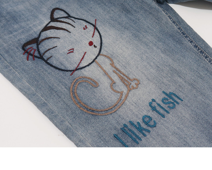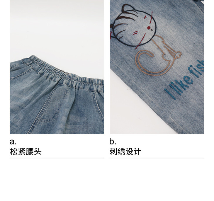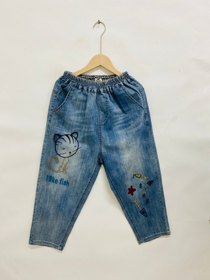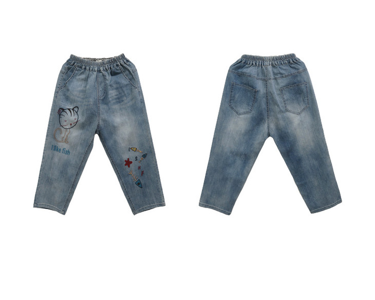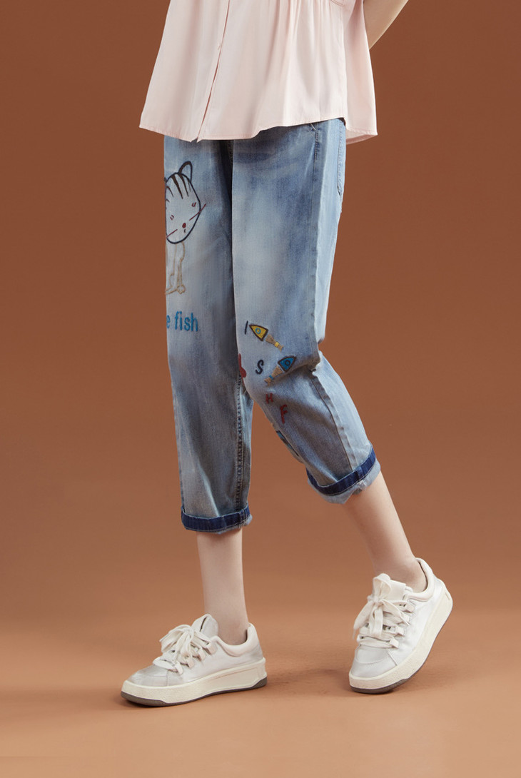 松紧高腰刺绣牛仔裤,显瘦百搭休闲哈伦裤PT7147