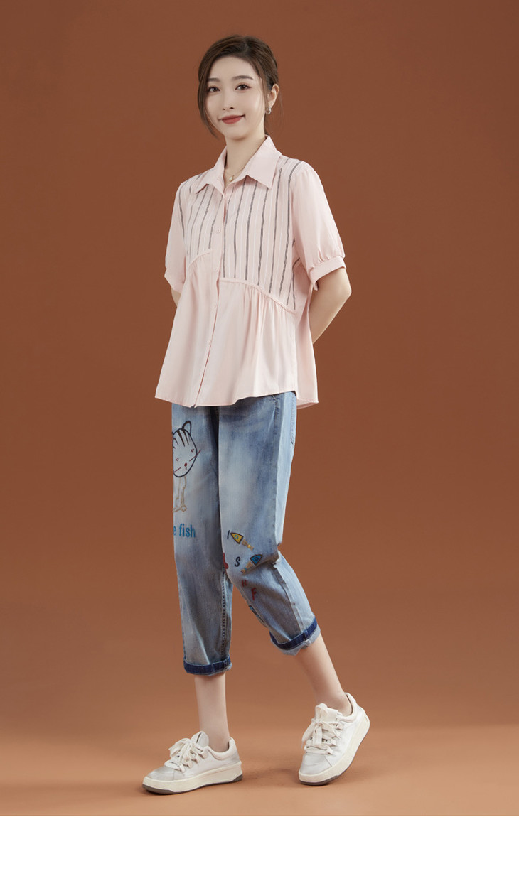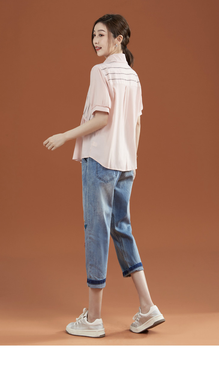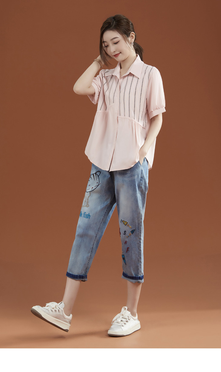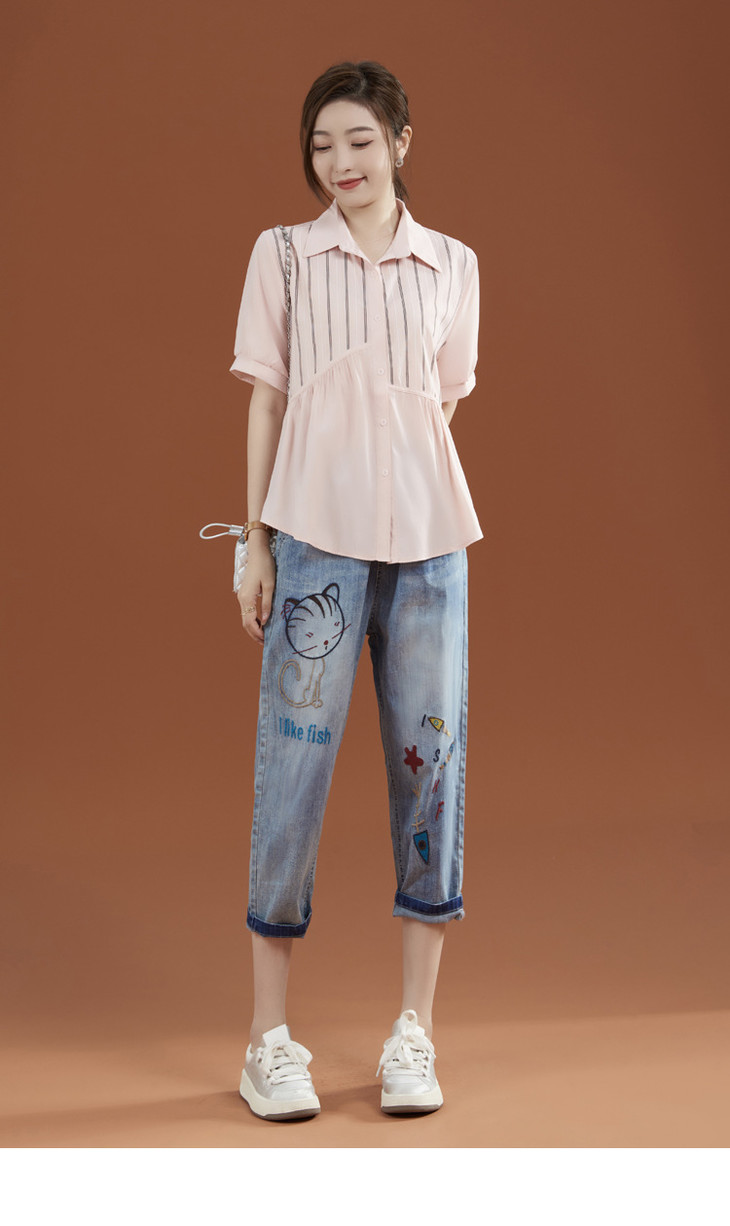 松紧高腰刺绣牛仔裤,显瘦百搭休闲哈伦裤PT7147