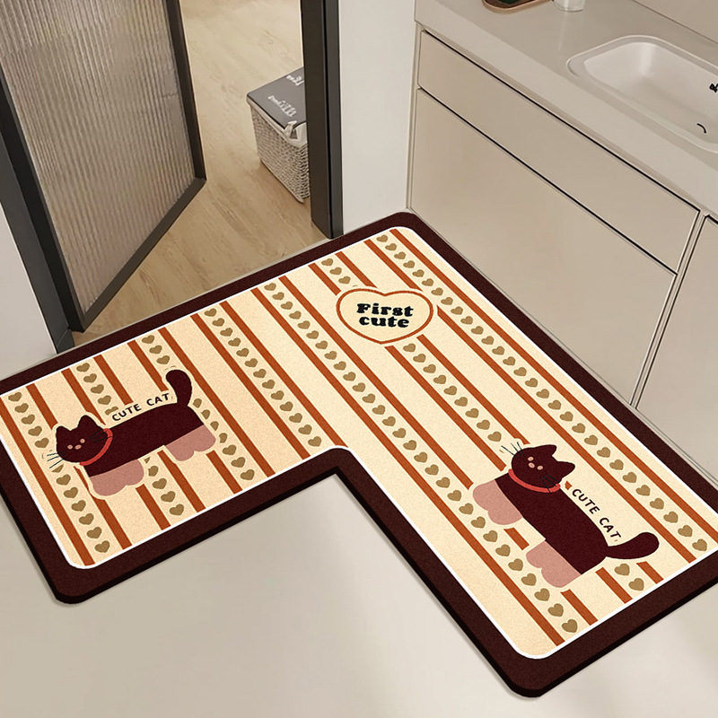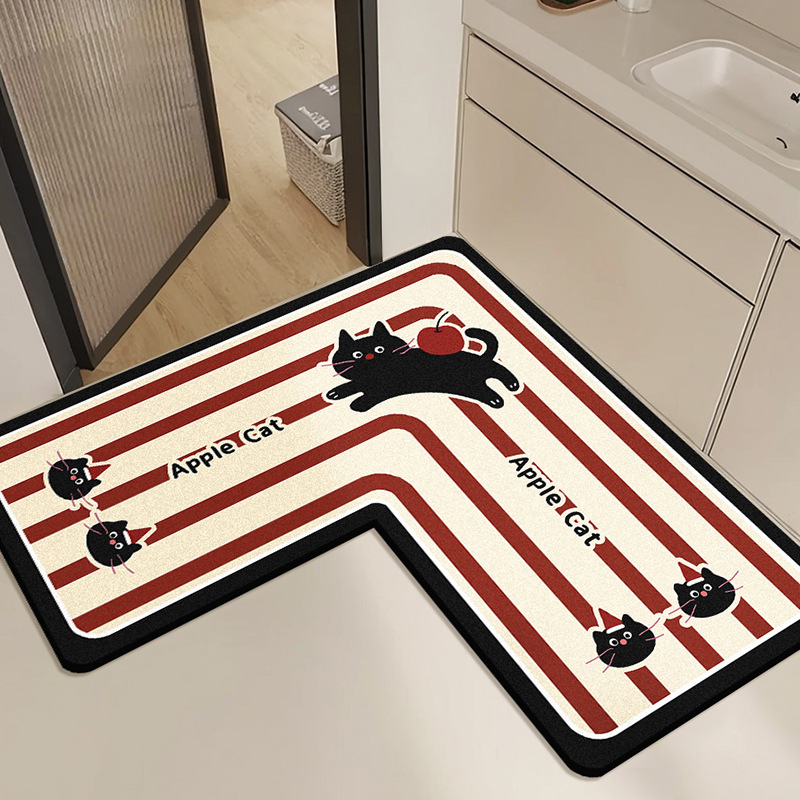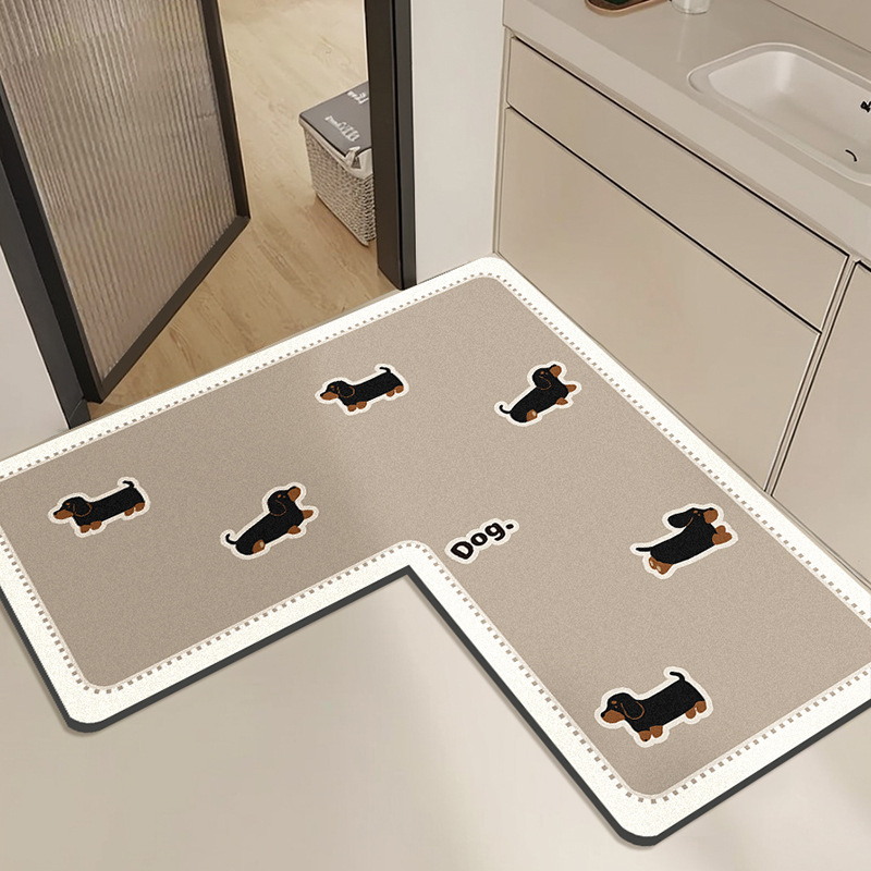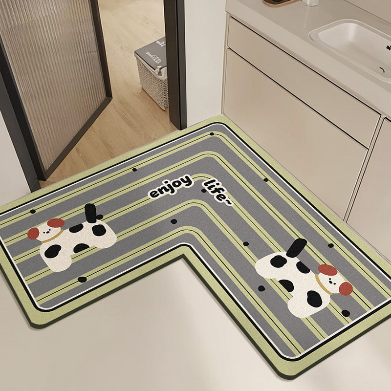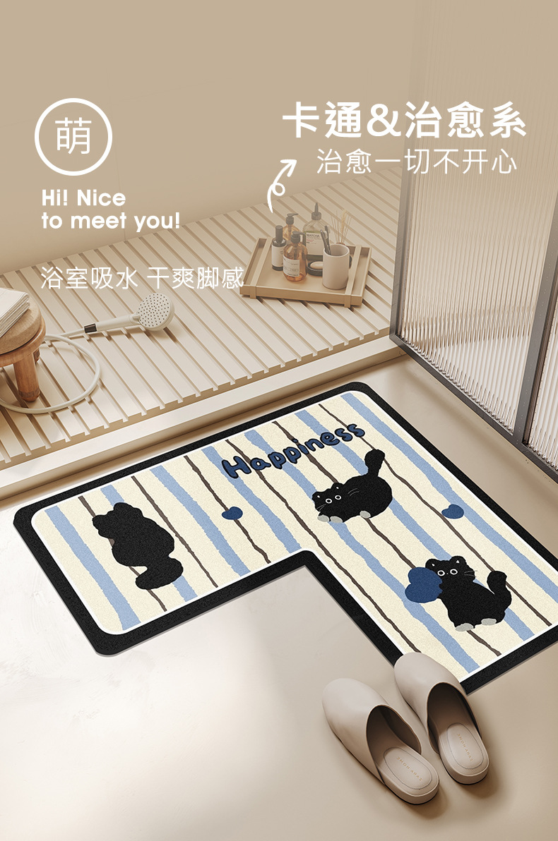 【卡通L型浴室地垫】卫生间门口防滑脚垫 洗漱台下吸水速干硅藻泥地垫