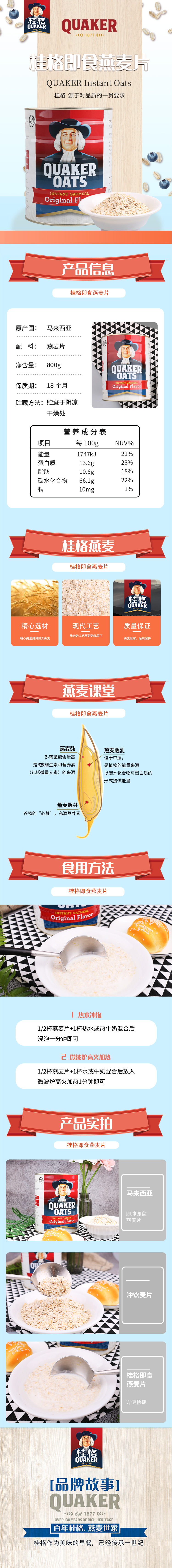 桂格即食燕麦片800g/033710 懒人必备无添加蔗糖纯麦片
