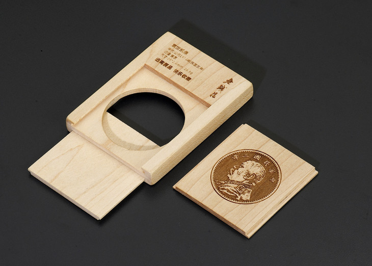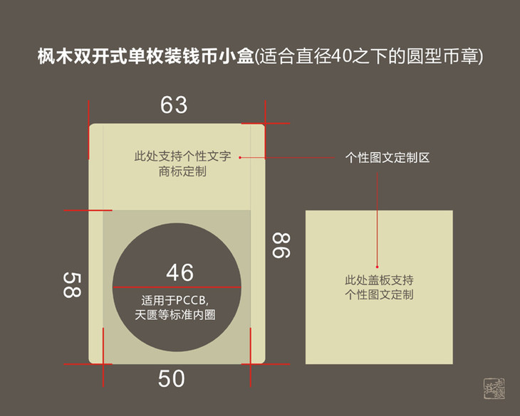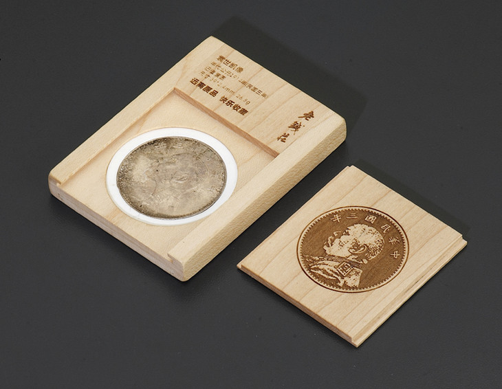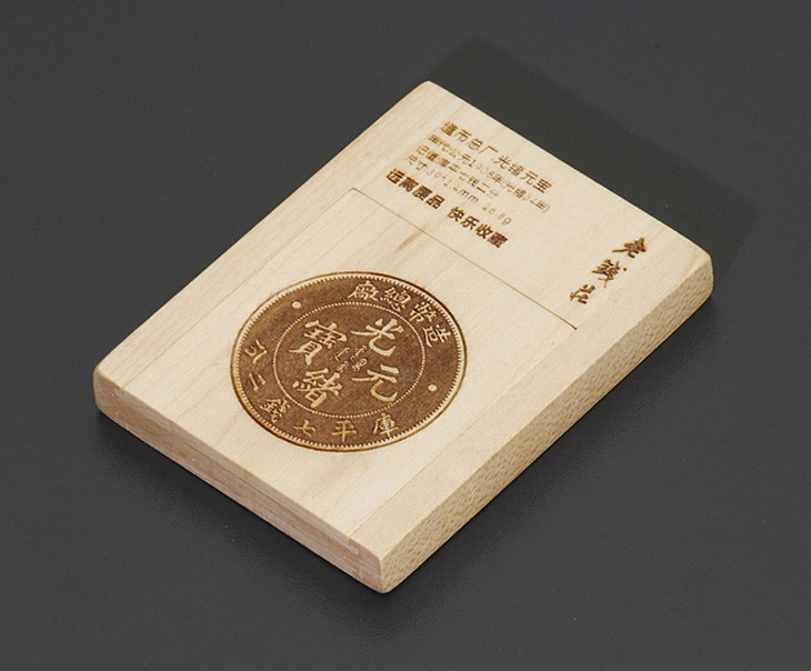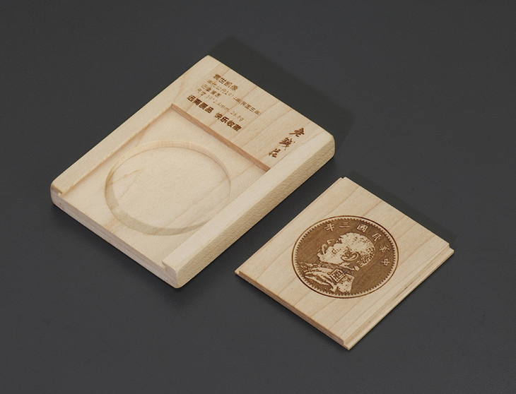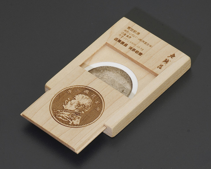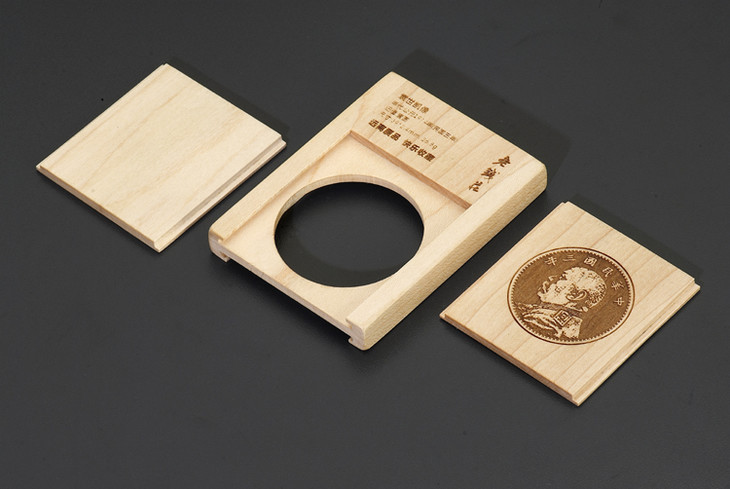 采用加拿木枫木精工制作,整体纯手工打腊(可自行深加工,抛光或多层上腊),以防变型开裂,盒盖松紧适合(若有个别因干湿度原因出现变型而影响抽拉不畅,可自行用美工刀刮薄盖板侧面,打磨光滑直到合畅即可),盒体长:86mm*宽65mm*厚11mm,内槽孔径46.5mm,可用市场上常见的标准52mm圆盒的各种软胶,泡板内圈,适用于直径40mm之下的各种币章,盒面刻有钱币图文(大清宣三,北洋34年,大头三年,八年,九年,十年,船洋22年,23年,孙像开国,湖北光绪,宣统,江南甲辰,造总等多款钱币图案自选),盒盖双面可开启,不用将币拿出木盒便能直观鉴赏钱币两面,钱盒小巧素雅,外出携带或上手把玩相当不错.