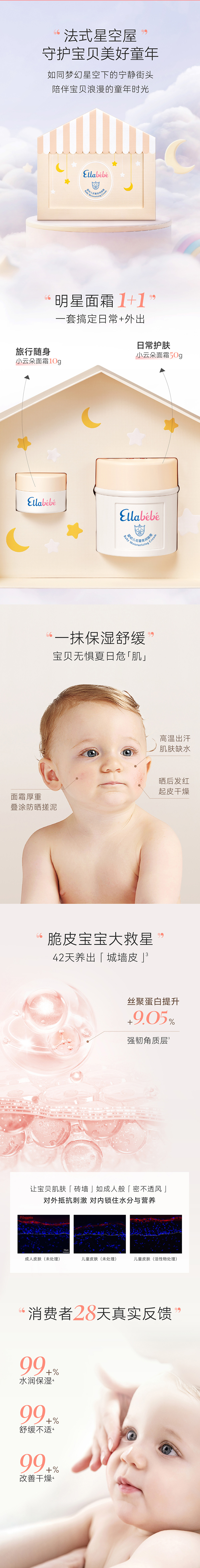 【新品】Ellabebe嗳乐蓓贝婴幼儿花蕾柔润小云朵宝宝面霜礼盒儿童面霜