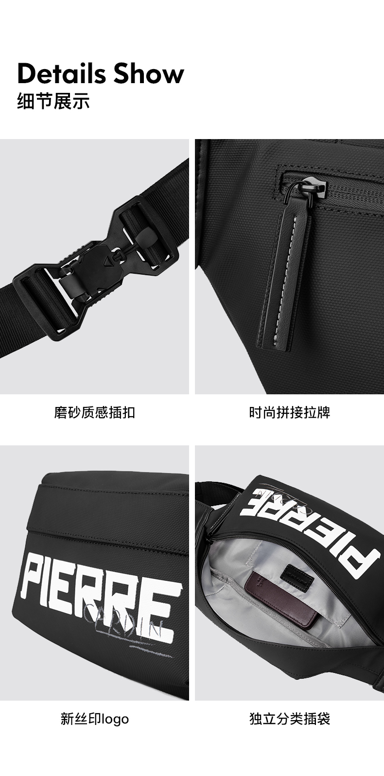 皮尔卡丹leisure系列 男士插袋休闲字母胸包斜跨包