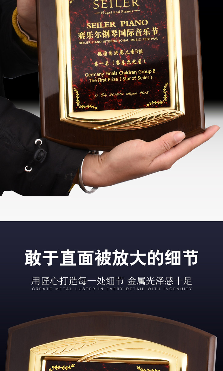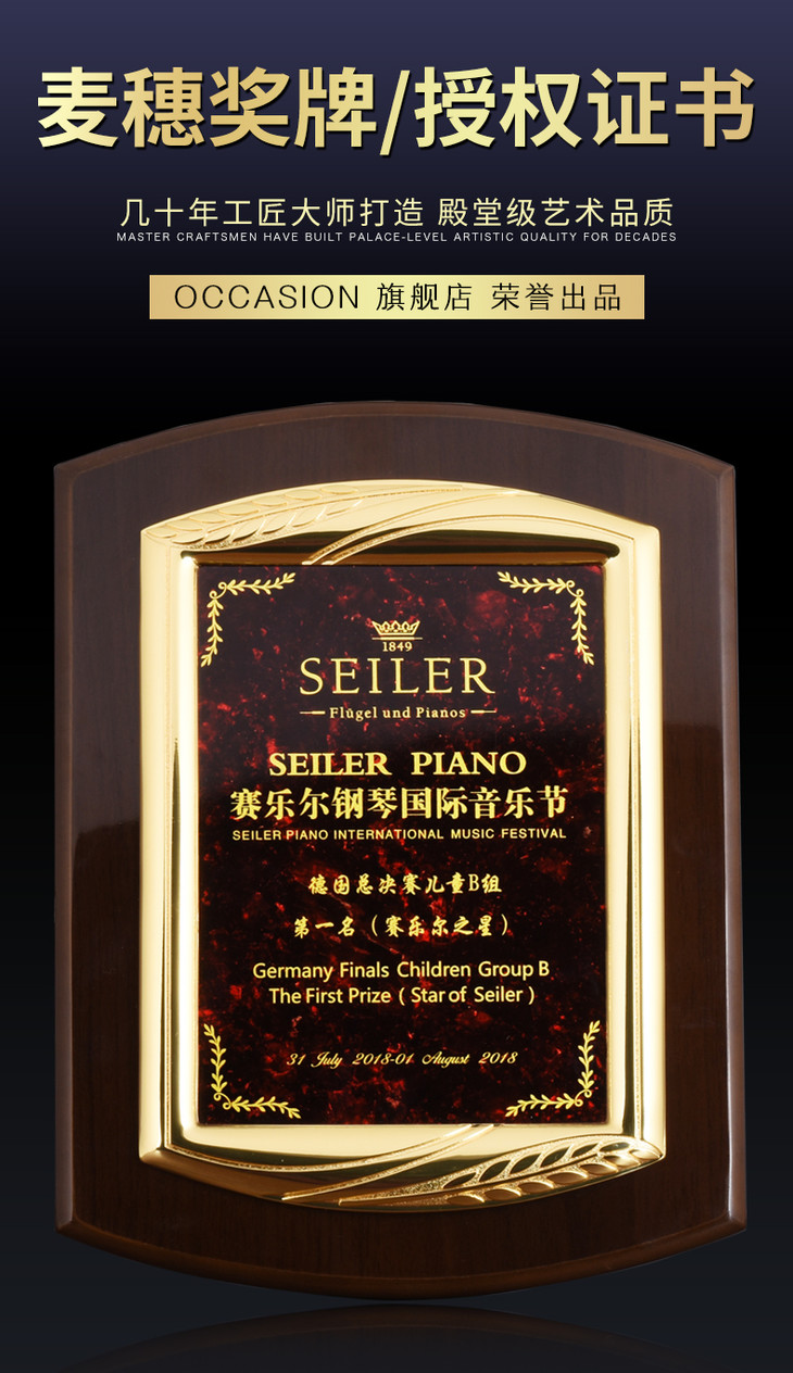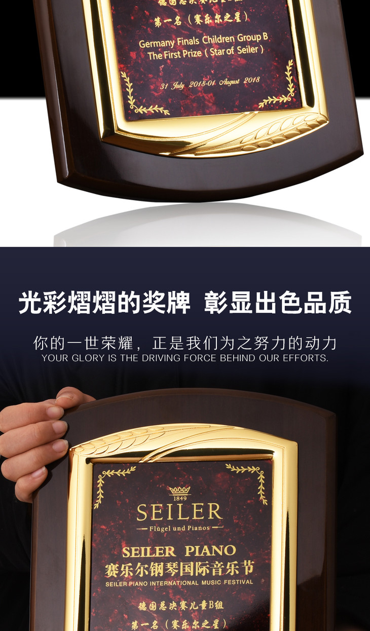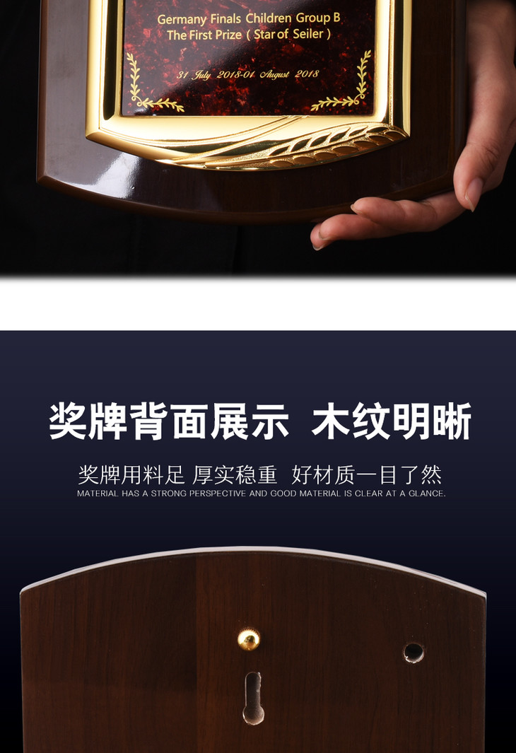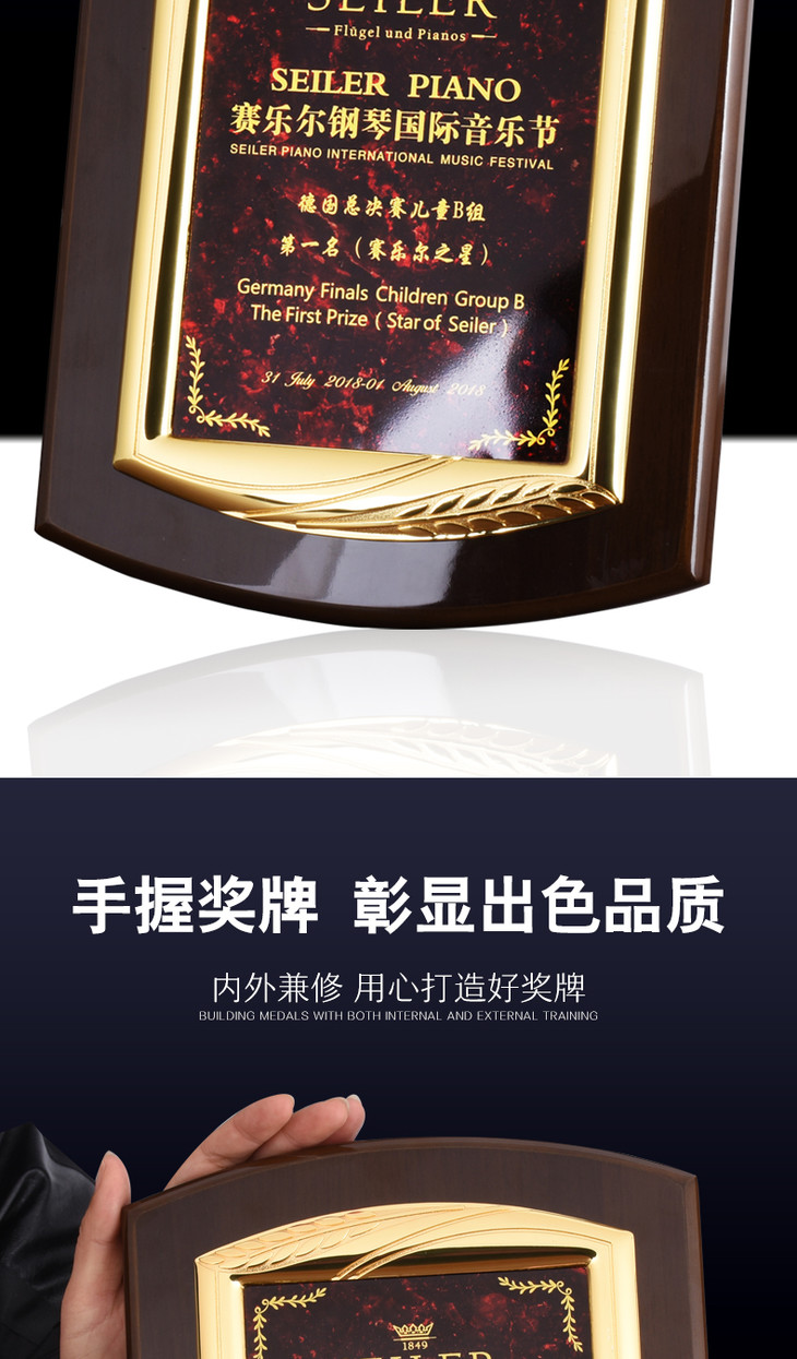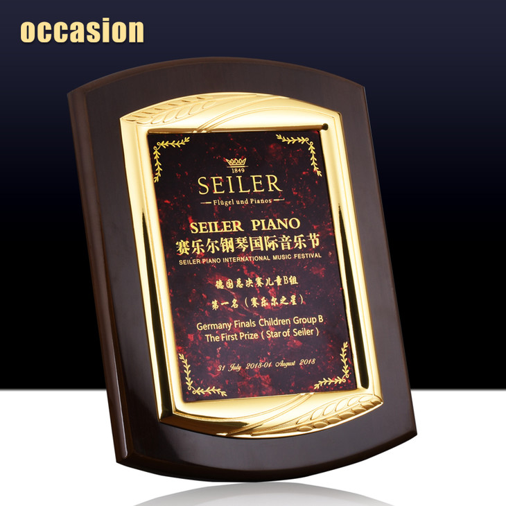 钢琴漆创意奖牌定制定做木质牌匾比赛证书金属加盟授权牌聘书制作