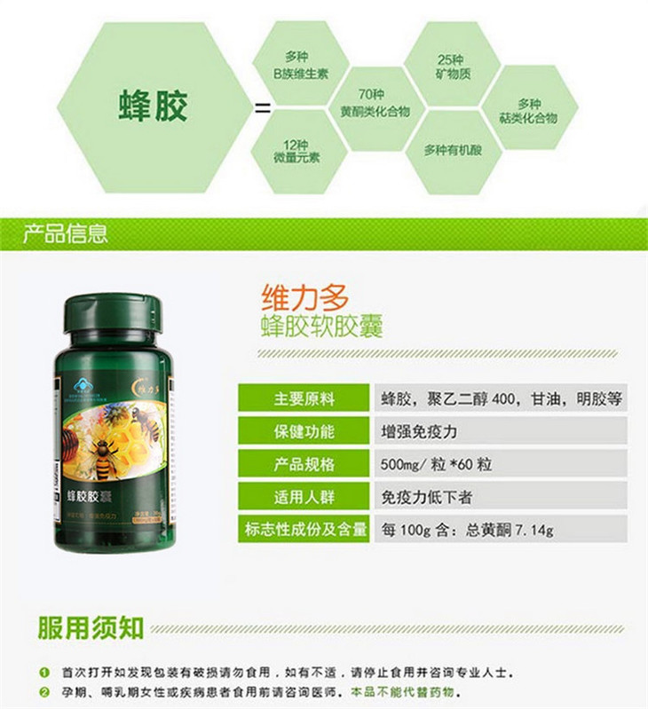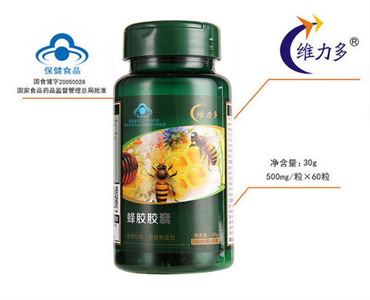 【一般贸易】【授权商品】维力多蜂胶胶囊 增强抵抗力60粒*500mg