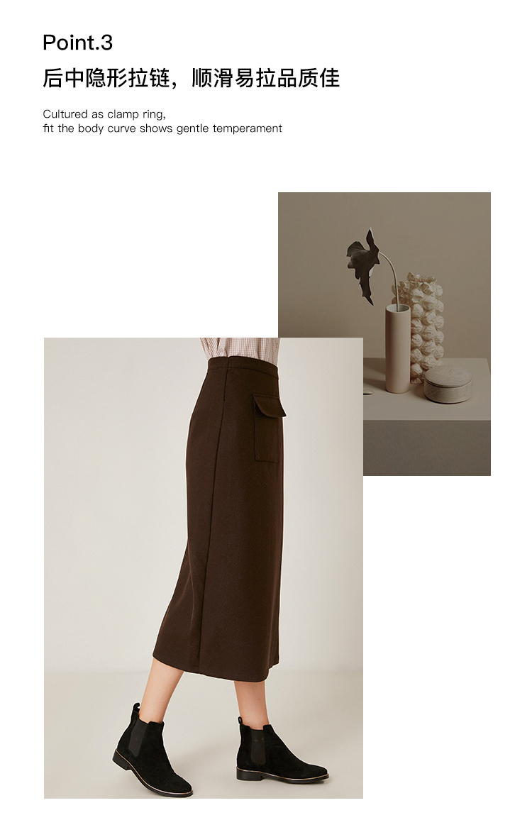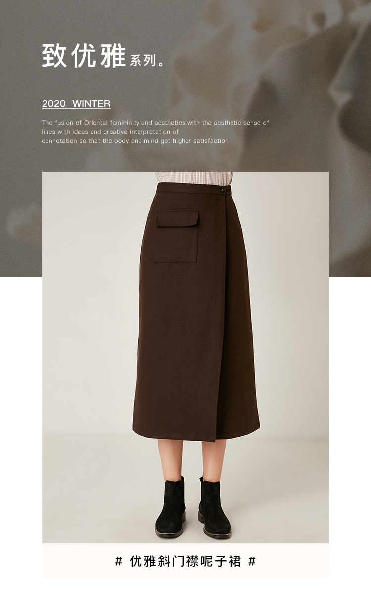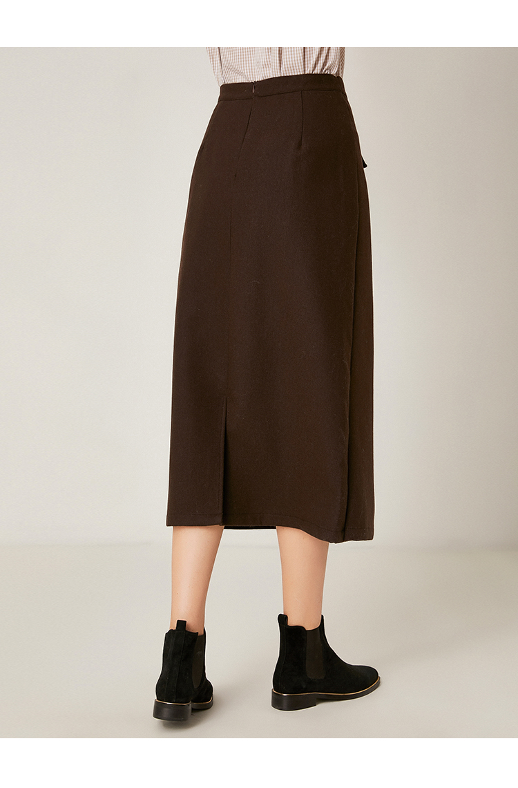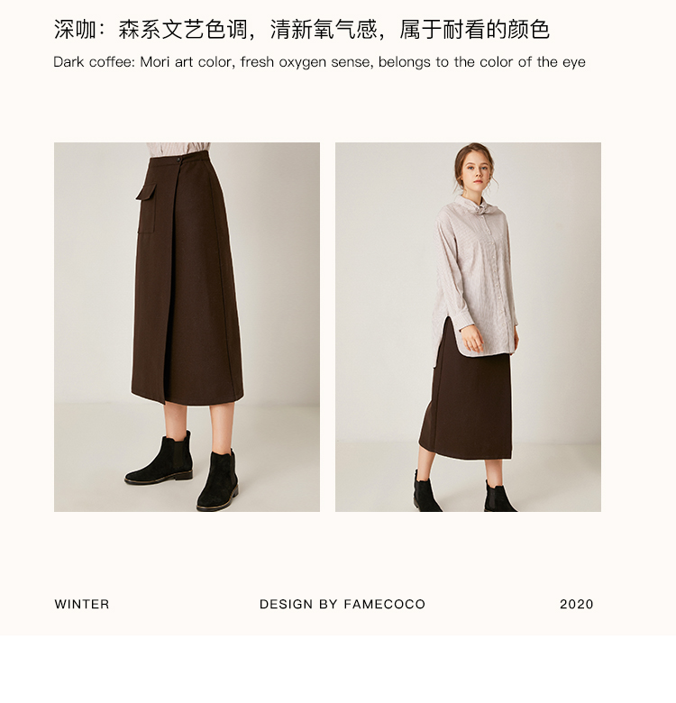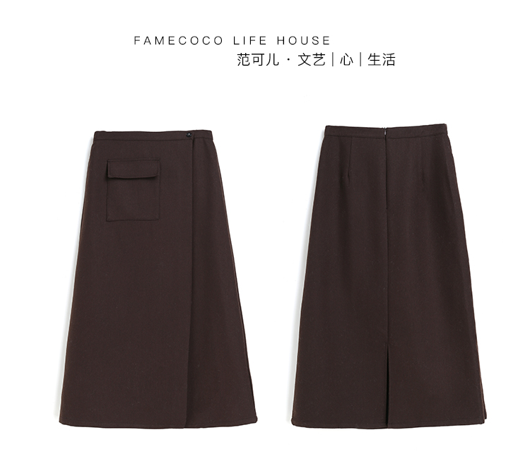 Famecoco范可儿毛呢半身裙秋冬女中长款百搭包臀裙裙子F198HB101