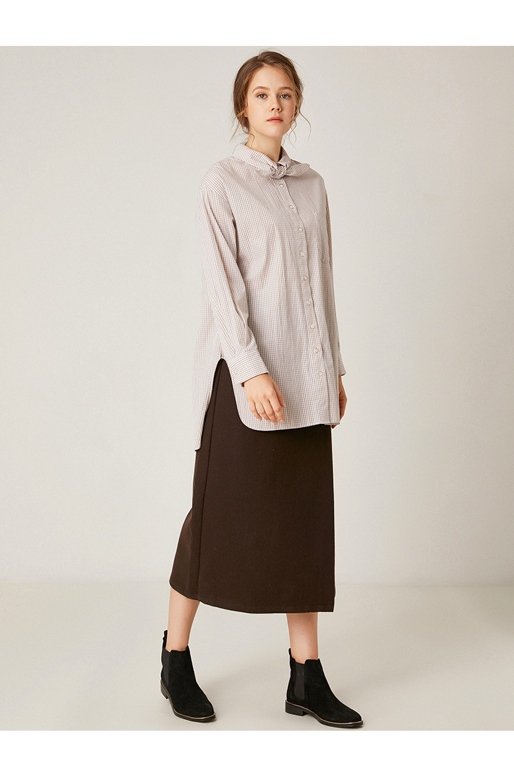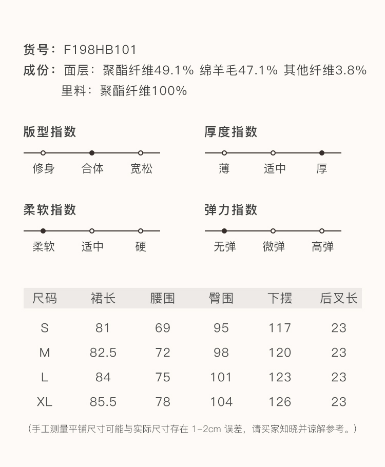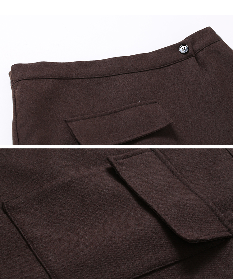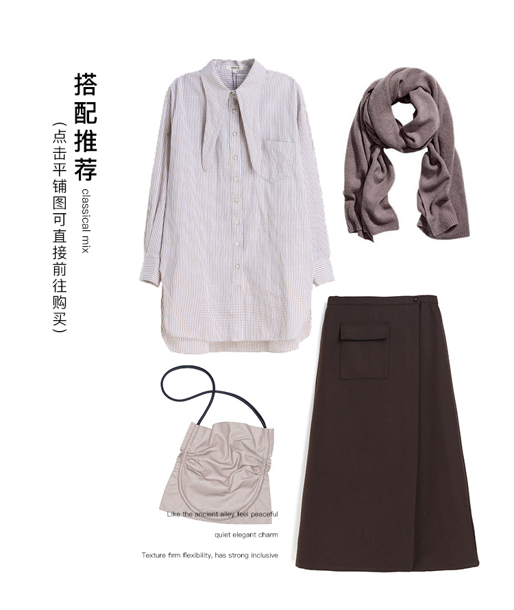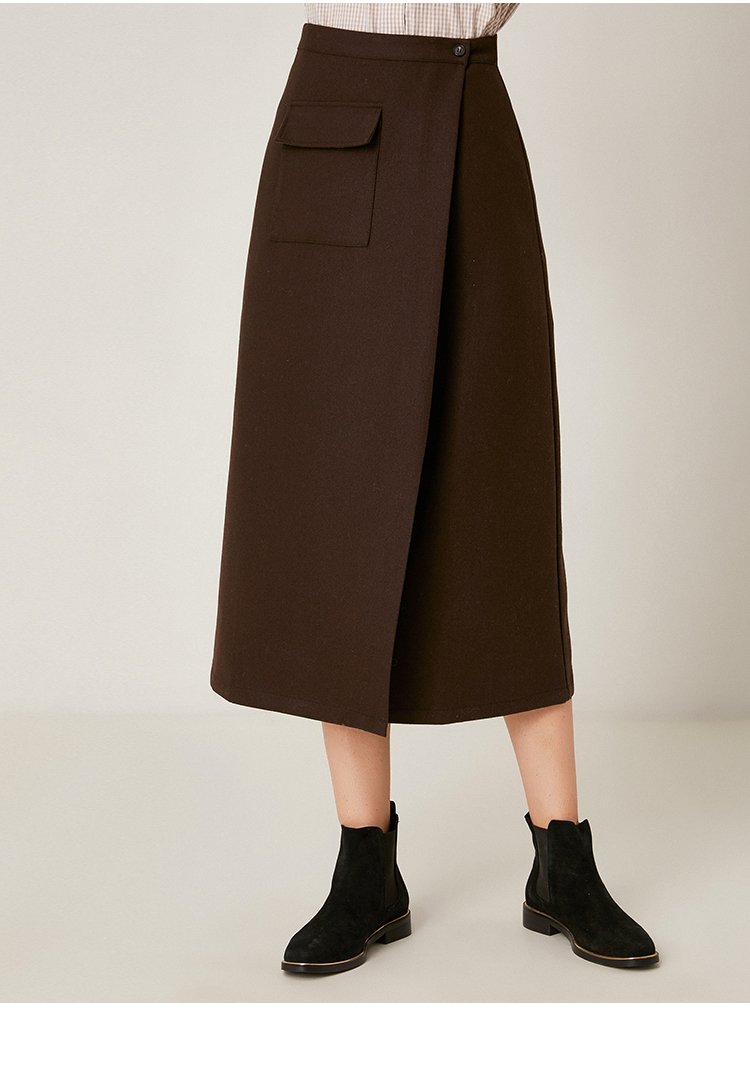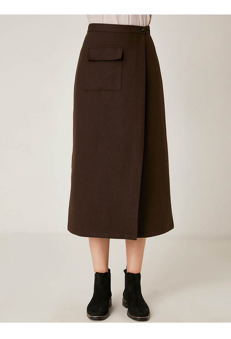 Famecoco范可儿毛呢半身裙秋冬女中长款百搭包臀裙裙子F198HB101