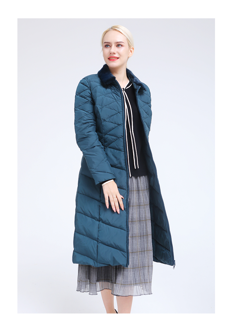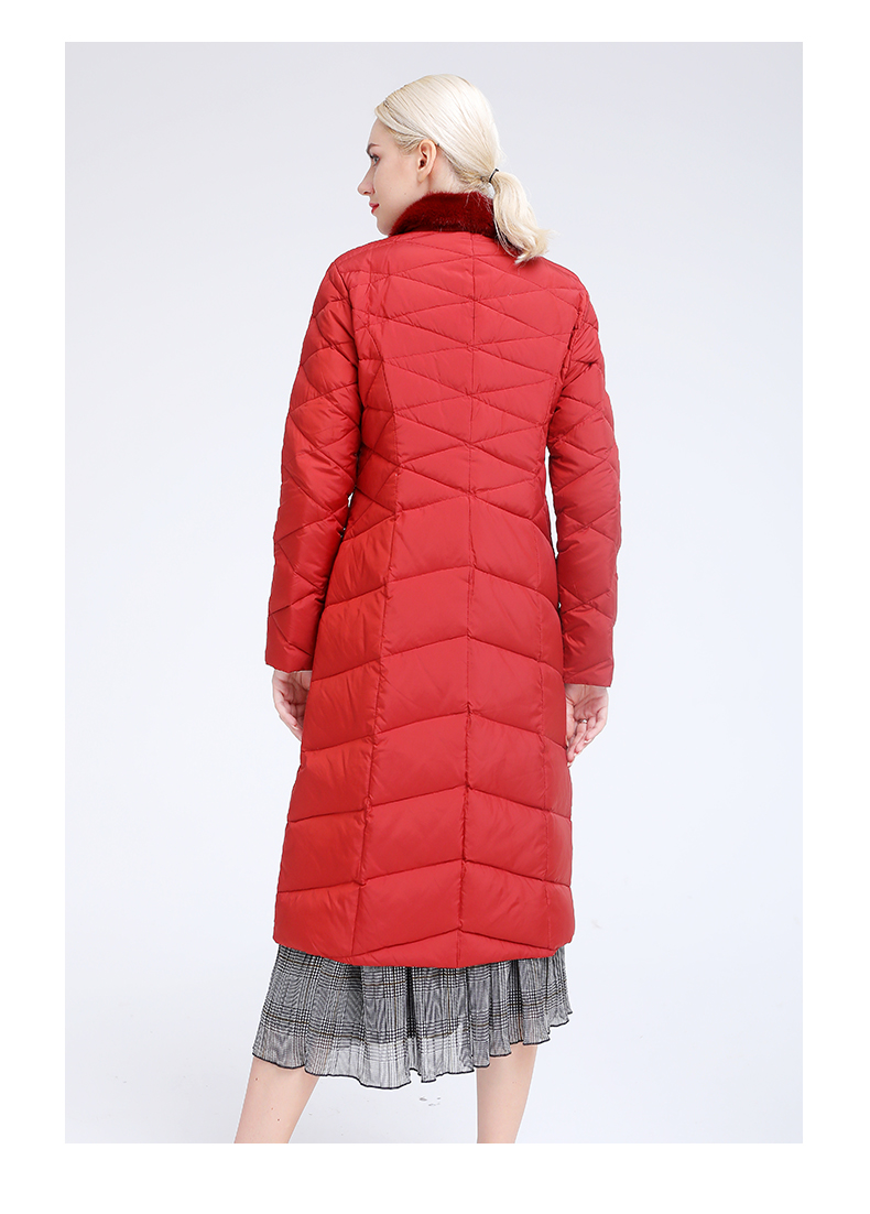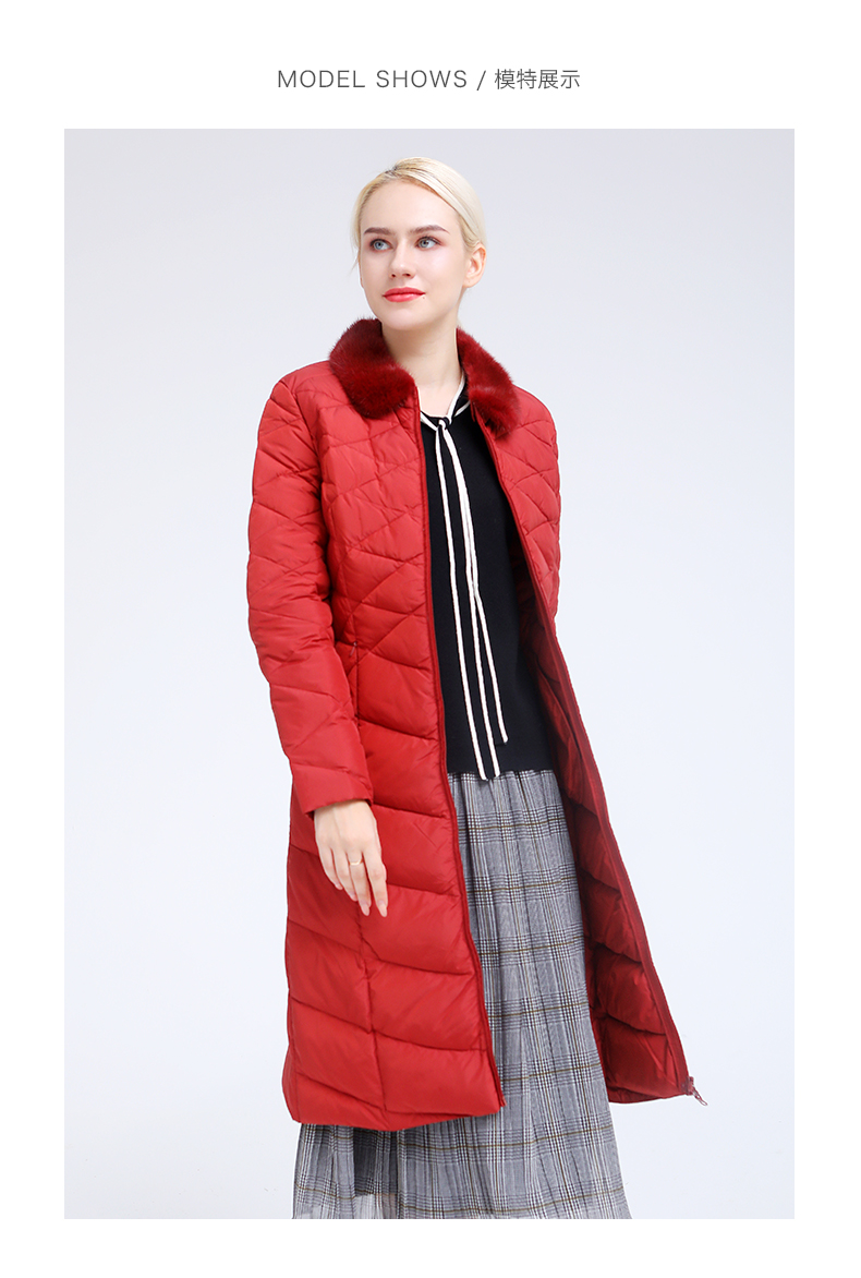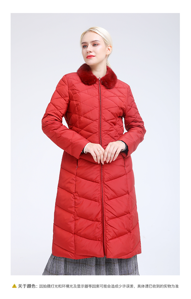 佐尔美冬季新款气质修身长款灰鸭绒貂毛领羽绒服E84YO08