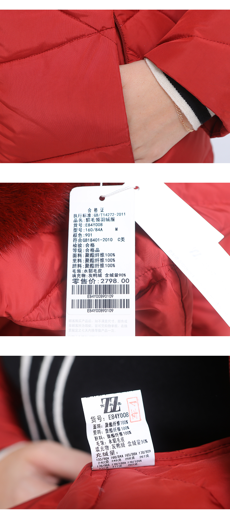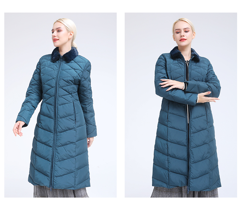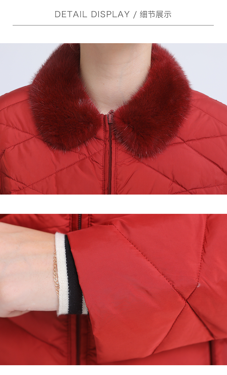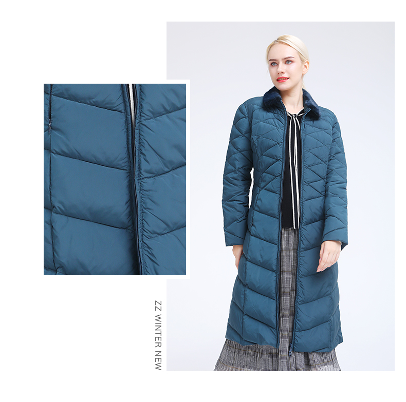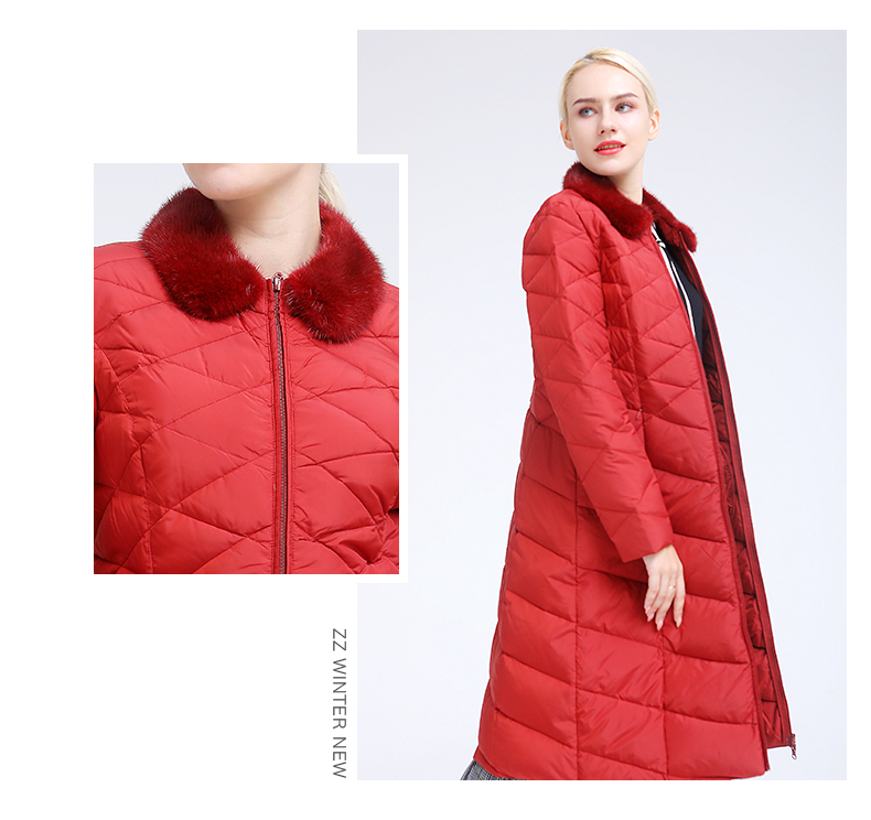 佐尔美冬季新款气质修身长款灰鸭绒貂毛领羽绒服E84YO08