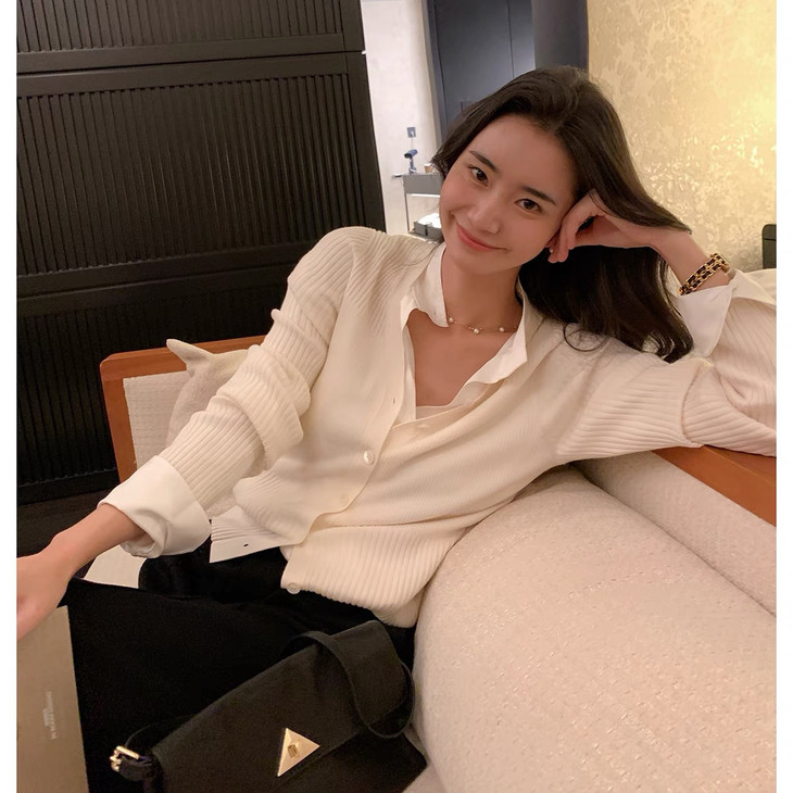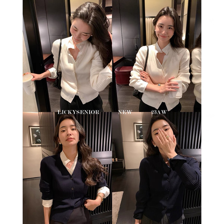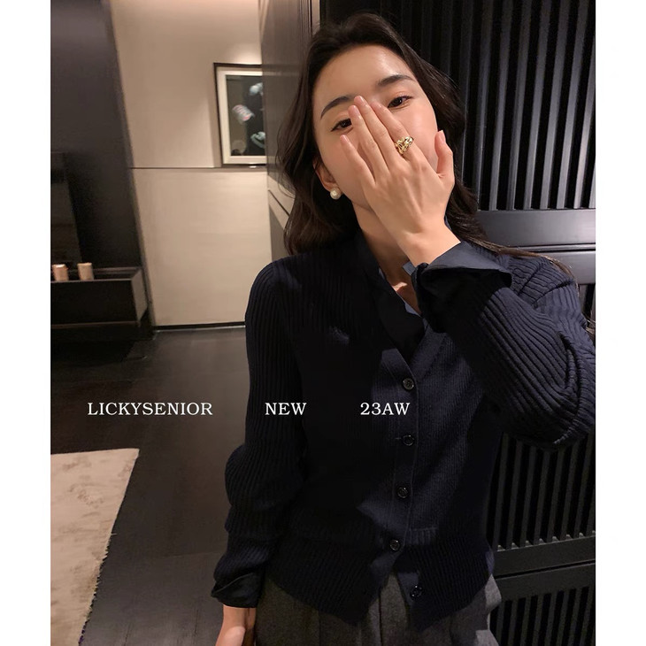🔸 【翻领撞色条纹精纺针织开衫HJZXZ153】初秋来袭🔥法式双股精纺羊毛开衫!白*鹿同款❗慵懒风针织开衫❗私服专场 品味满满 品质从没输过!