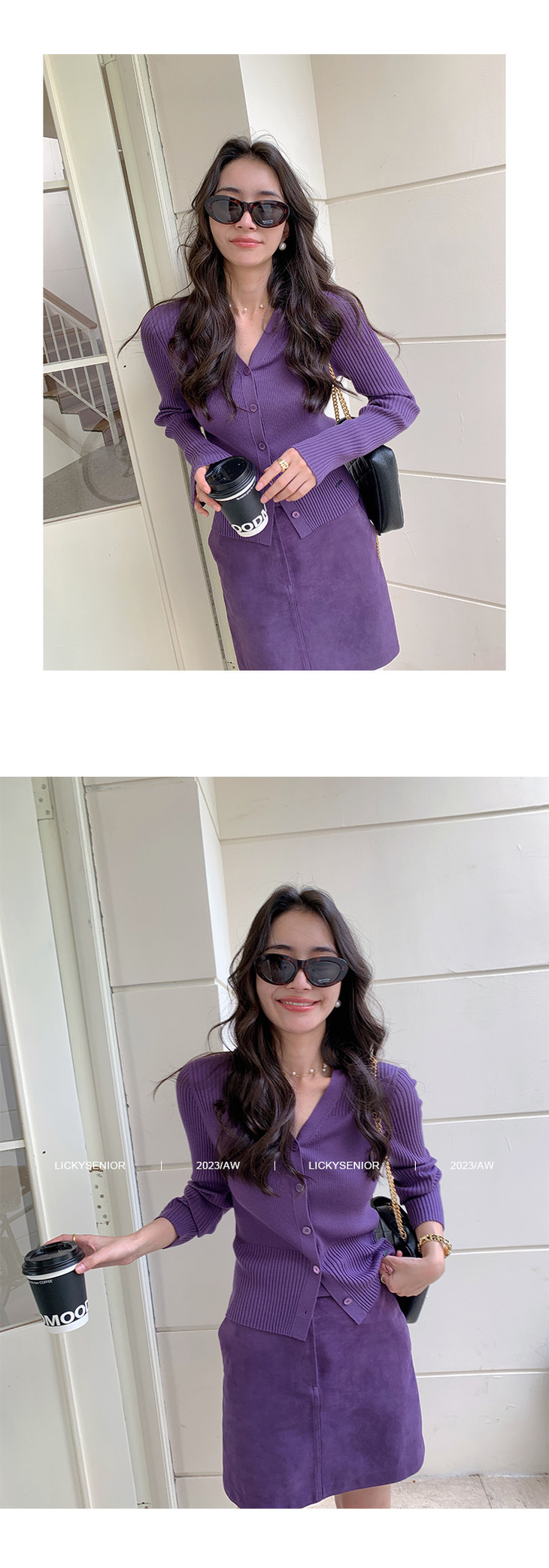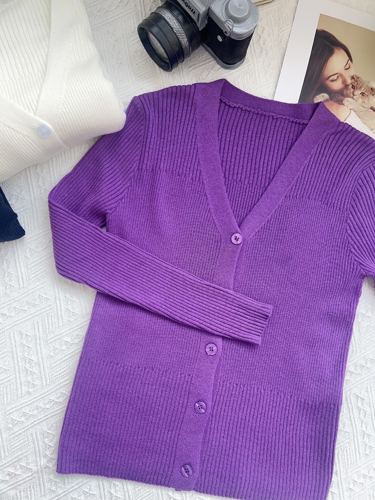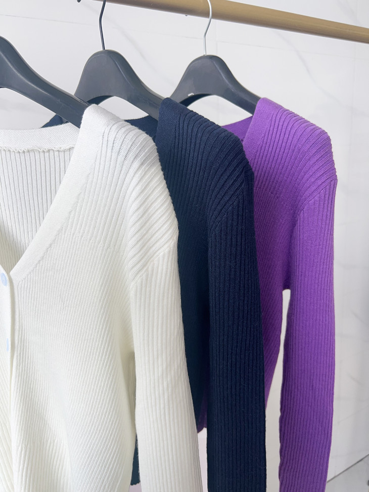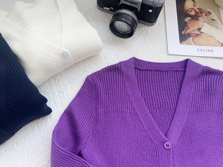 品名:V领纯色抽条精纺羊毛针织衫 面料:10%羊毛20%腈纶30%锦纶40%涤纶 颜色:紫色/藏青色/白色 尺寸:M/L/XL S(70-85斤)M(85-110斤)L(110-125斤) XL(125-145斤)
