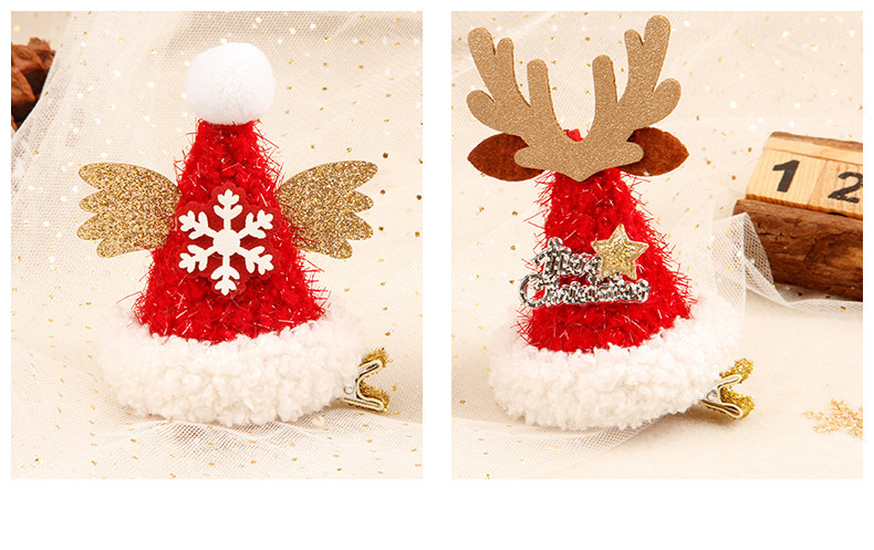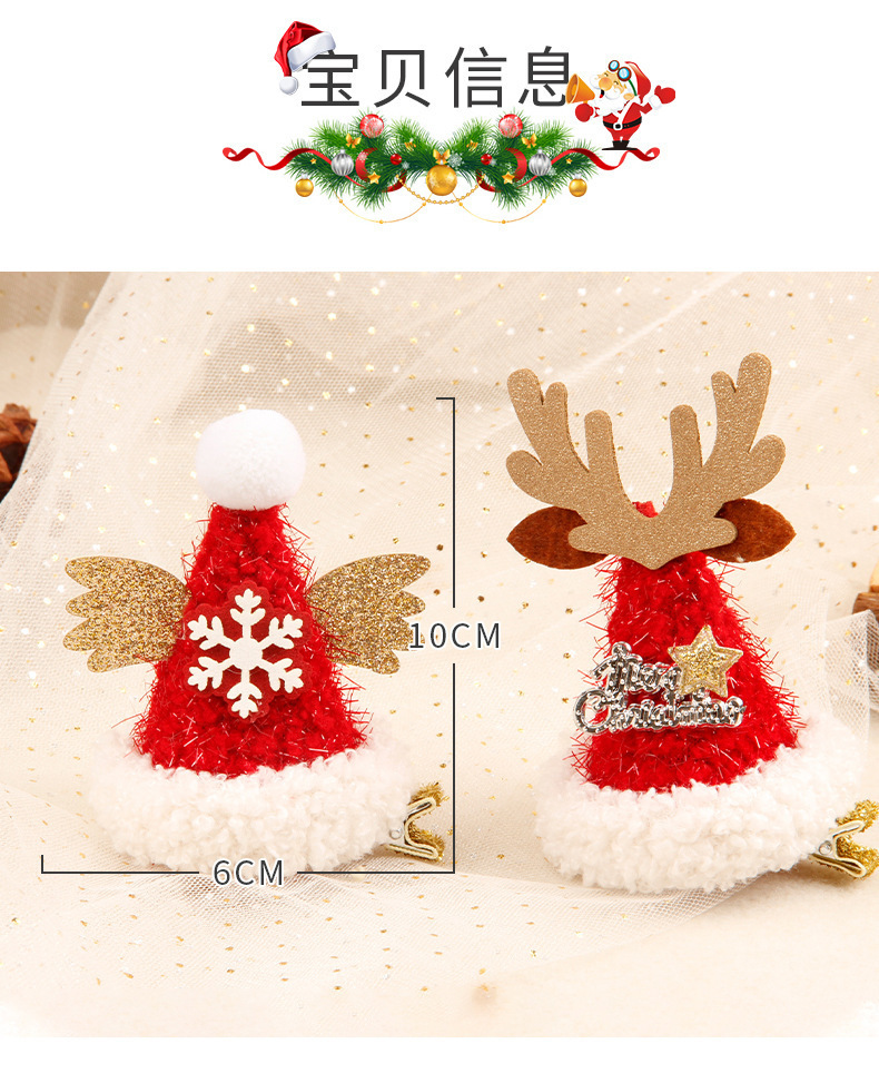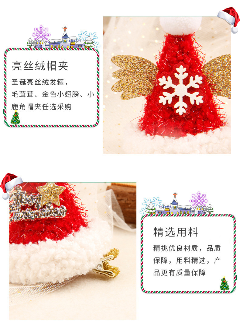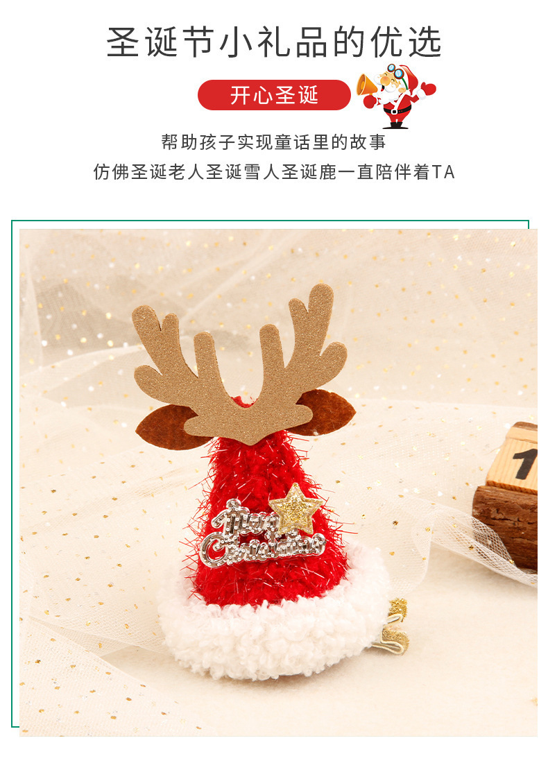 【圣诞亮丝绒帽夹】圣诞小帽子发夹可爱麋鹿雪花发饰圣诞节节日装扮头饰发卡。ry