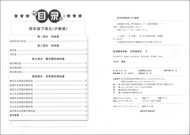 新版 上海小学教材教辅 标准期末考卷语文四年级第二学期/4年级下 第三版 教材配套同步辅导测试卷 期中期末冲刺模拟练习题试卷