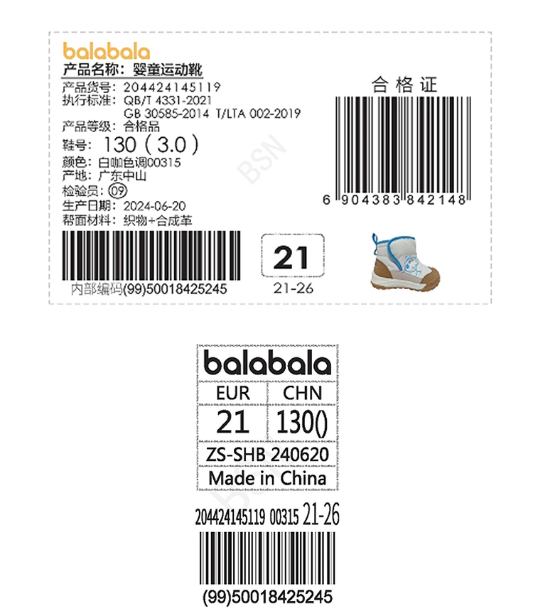 巴拉巴拉童鞋儿童运动靴冬季加绒棉靴宝宝婴儿鞋护足防滑靴子潮流
