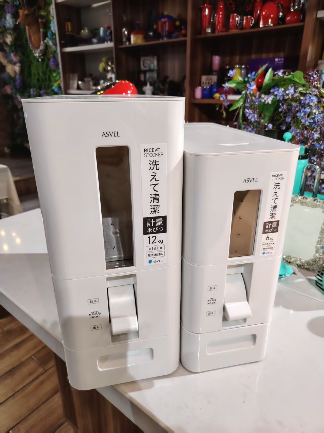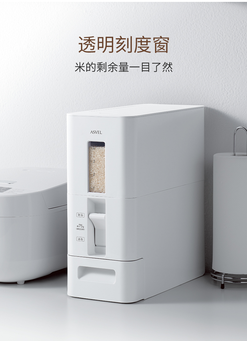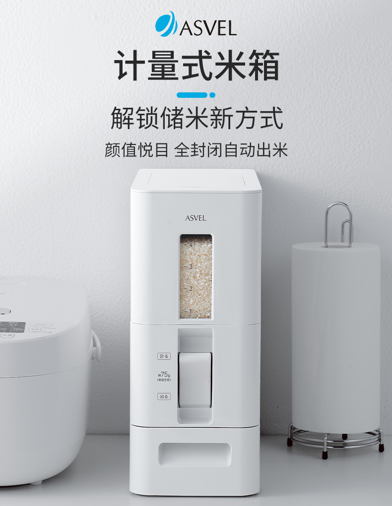 72小时内发货【自动计量米桶】ASVEL阿司倍鹭品牌,计量防潮加厚,防霾防虫防蛀,自动出米桶 别看桶小小的不大,大号的可以放24斤米,一般一袋米20斤,妥妥的方便,斜坡设计让米一粒不剩的到碗里来