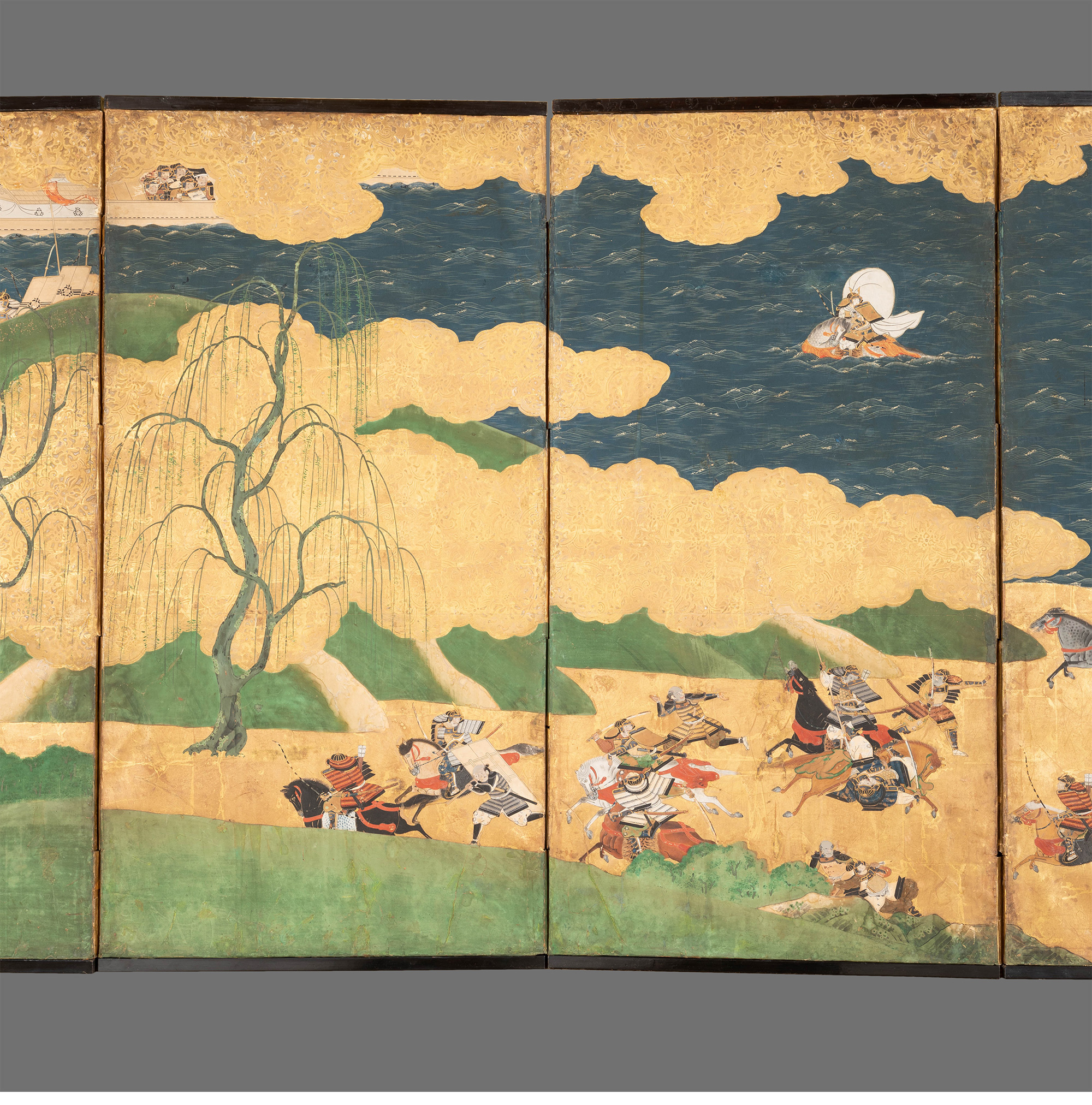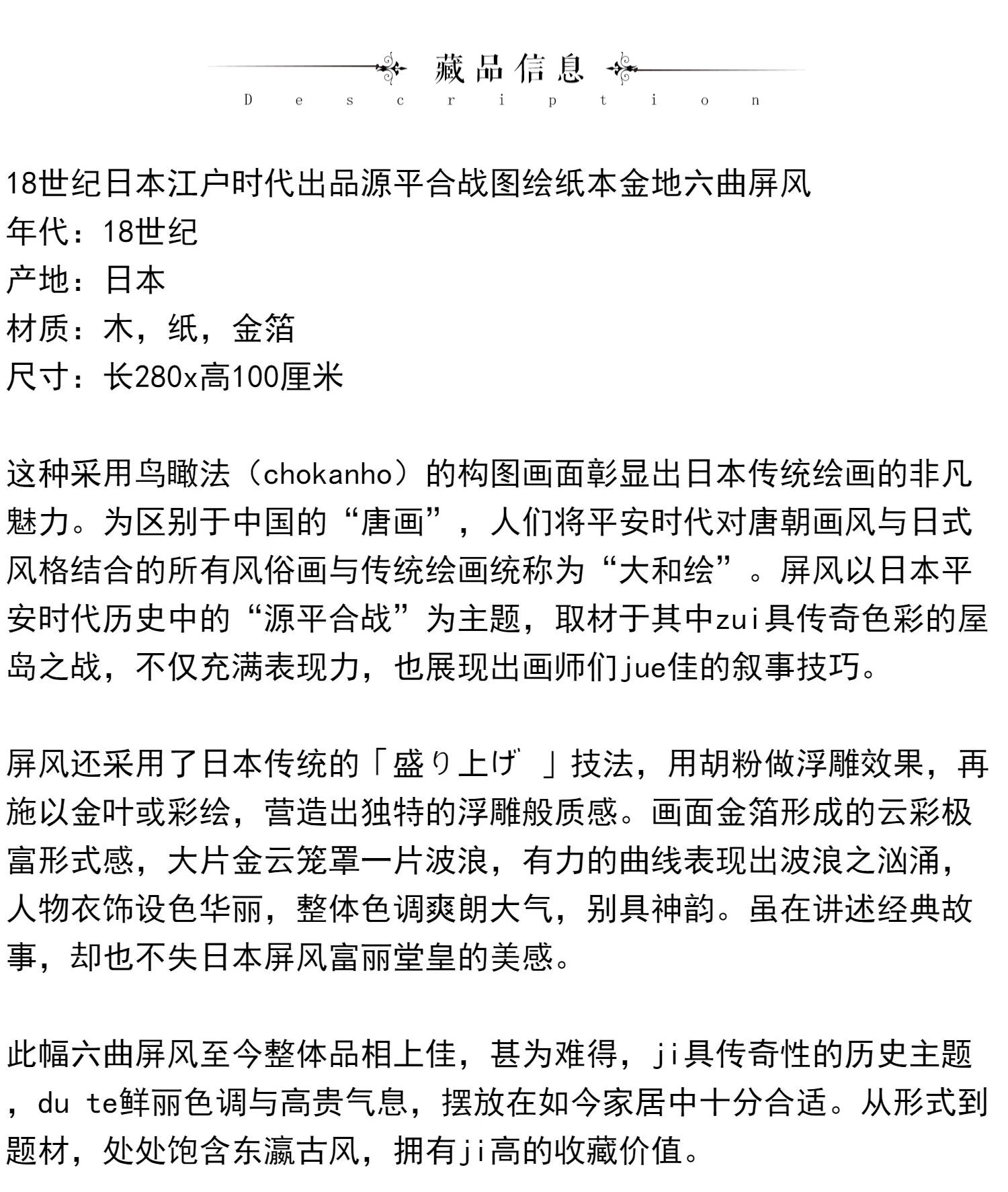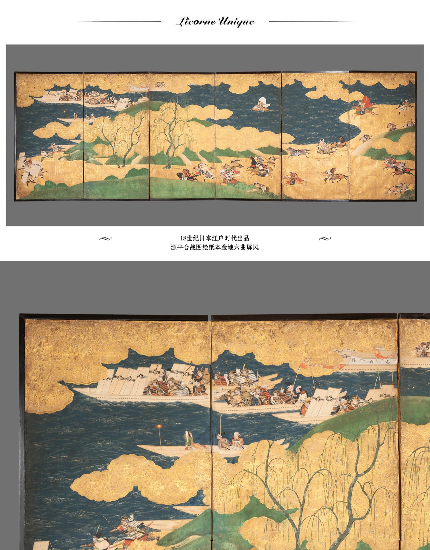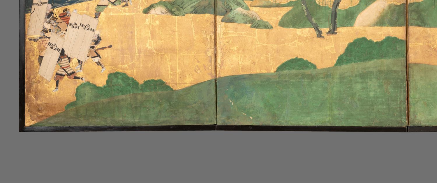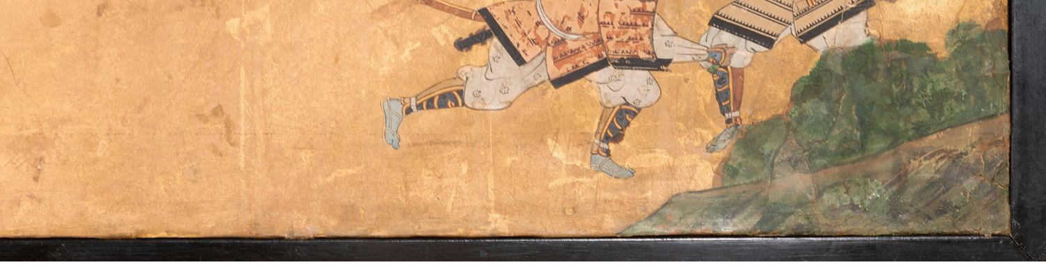 独角鹿西洋古董日本江户时代源平合战图绘纸本金地六曲屏风