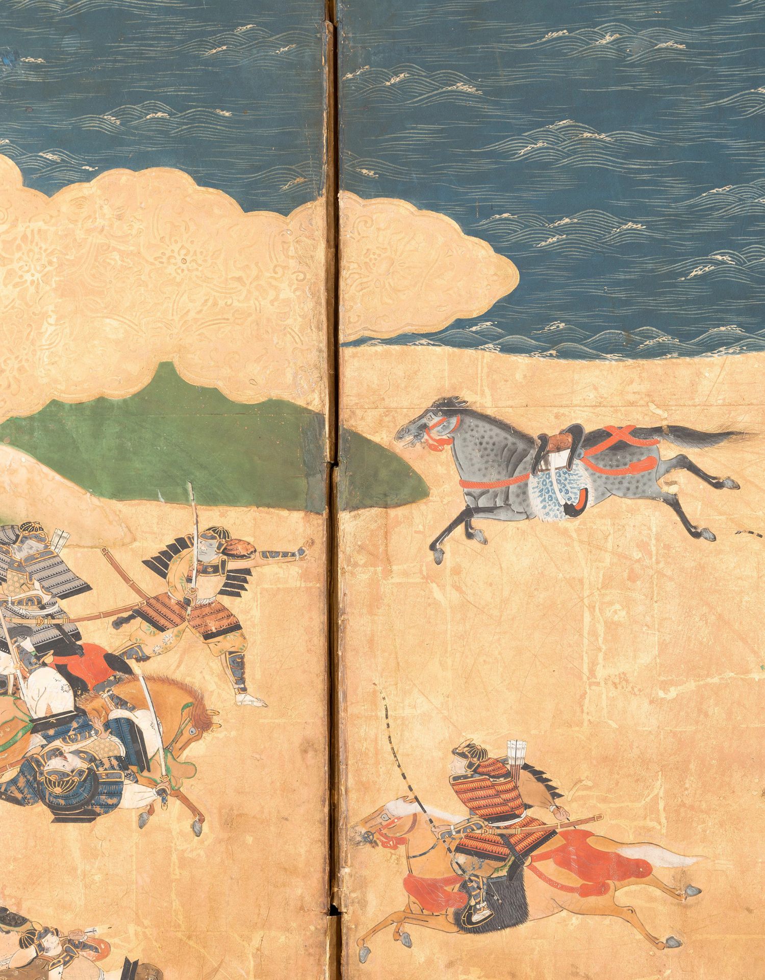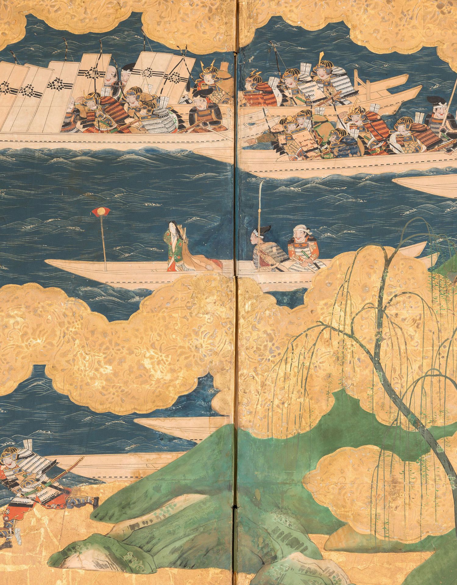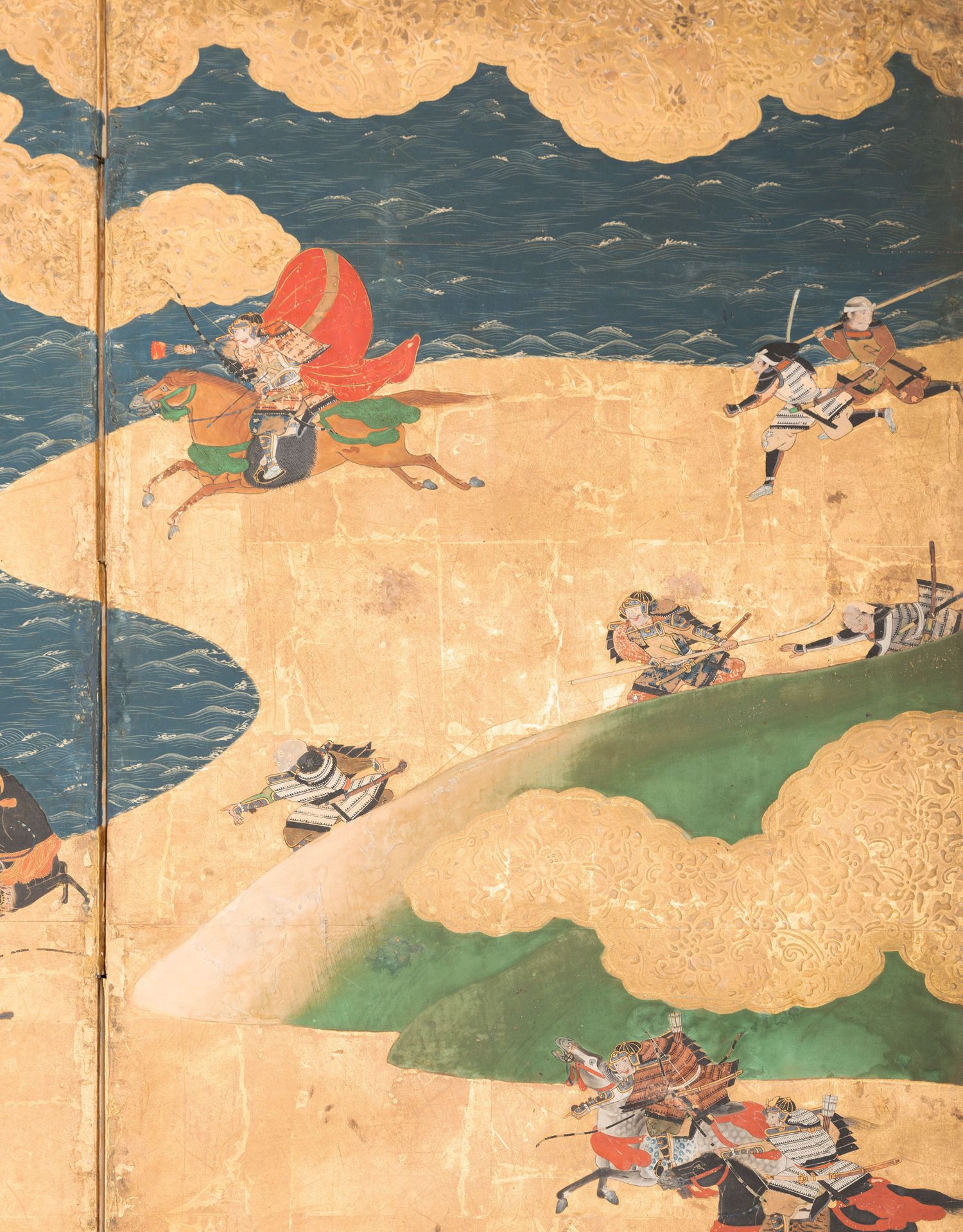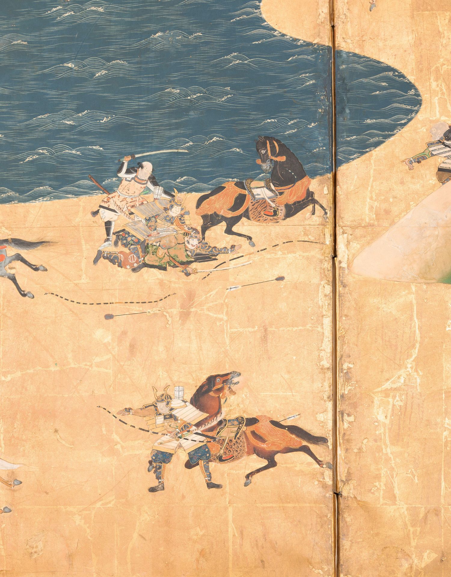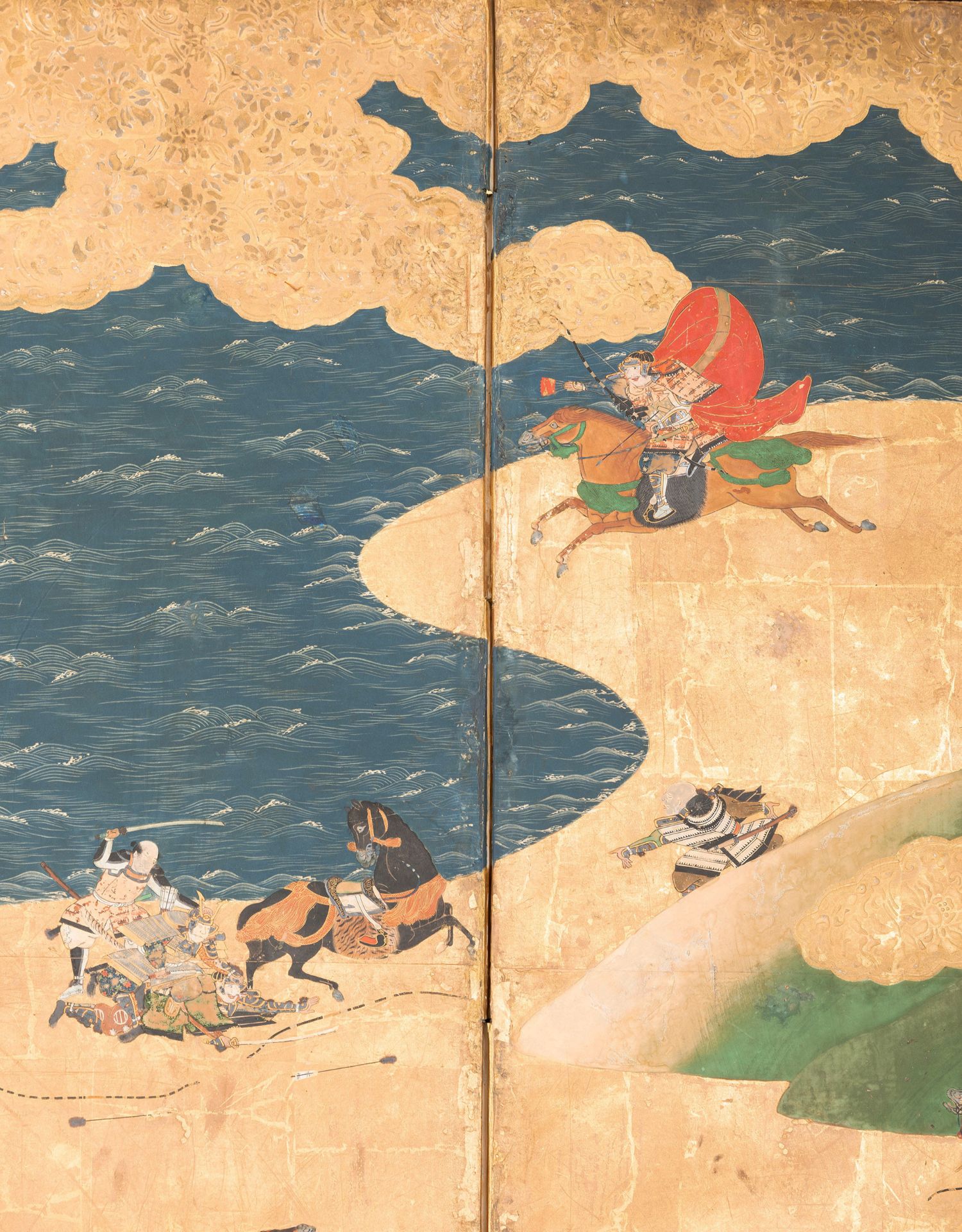 独角鹿西洋古董日本江户时代源平合战图绘纸本金地六曲屏风