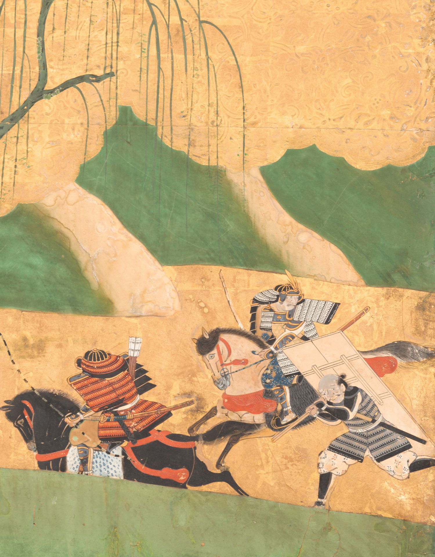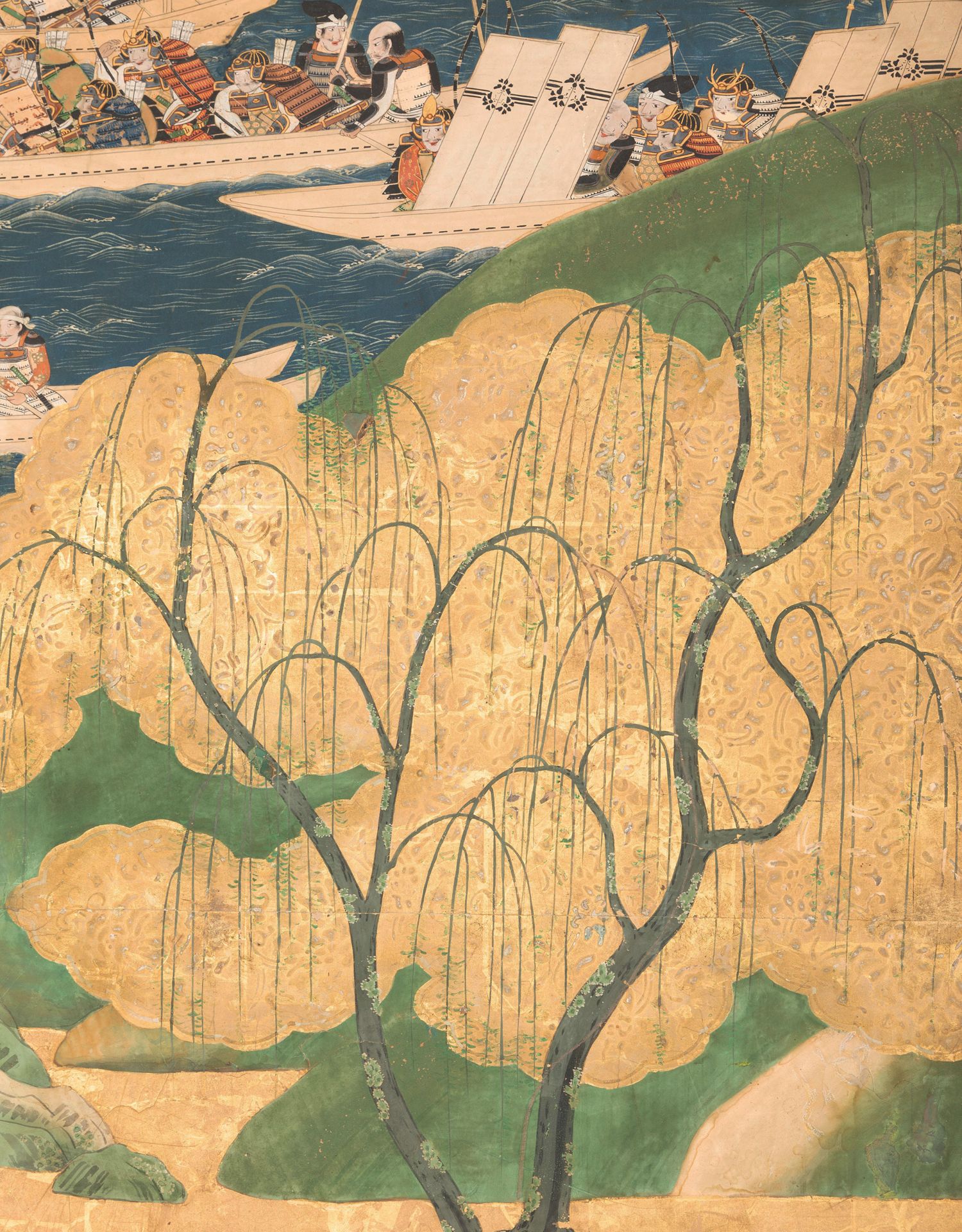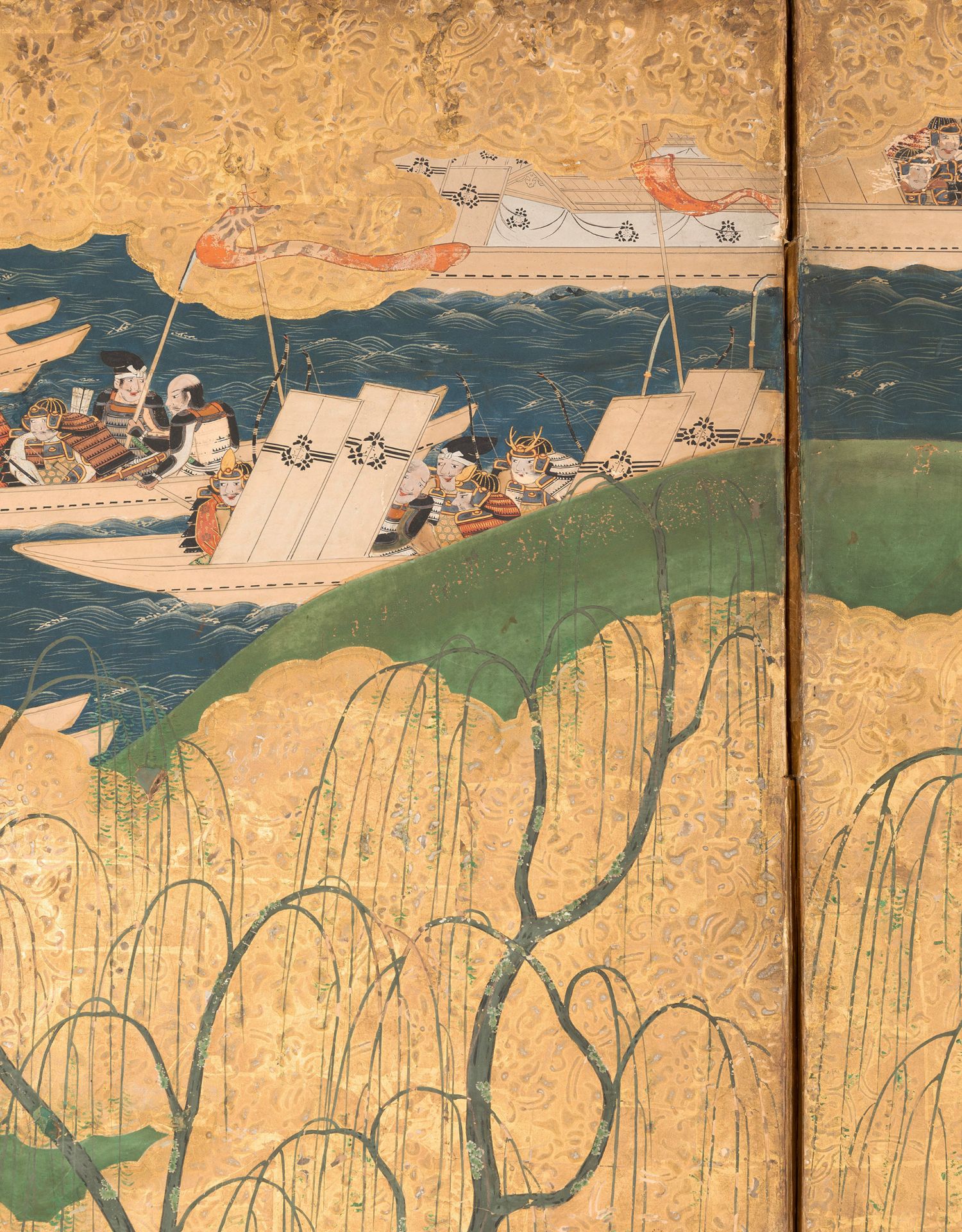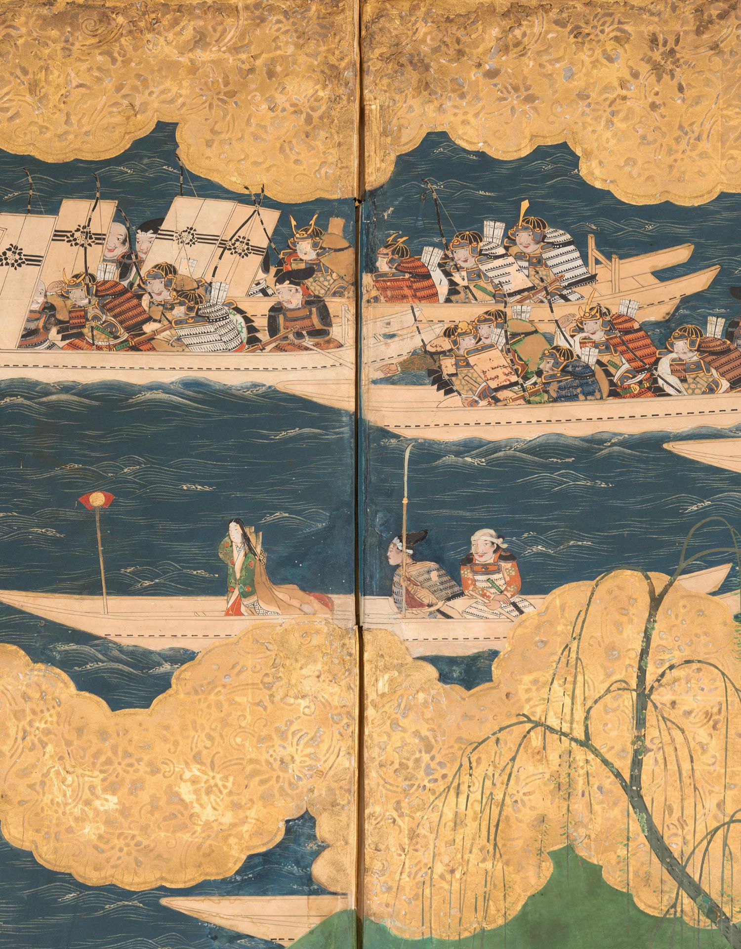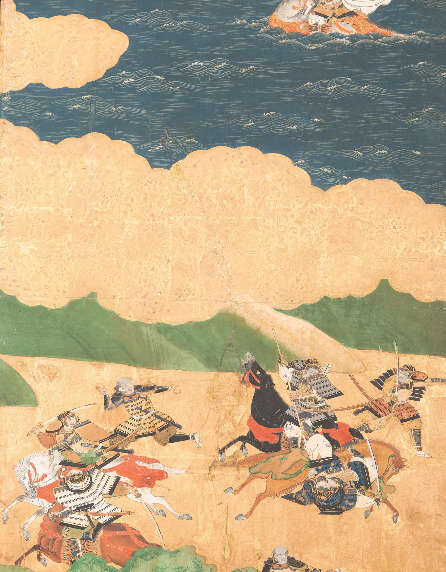 独角鹿西洋古董日本江户时代源平合战图绘纸本金地六曲屏风