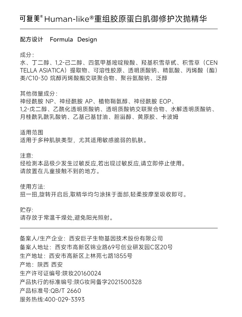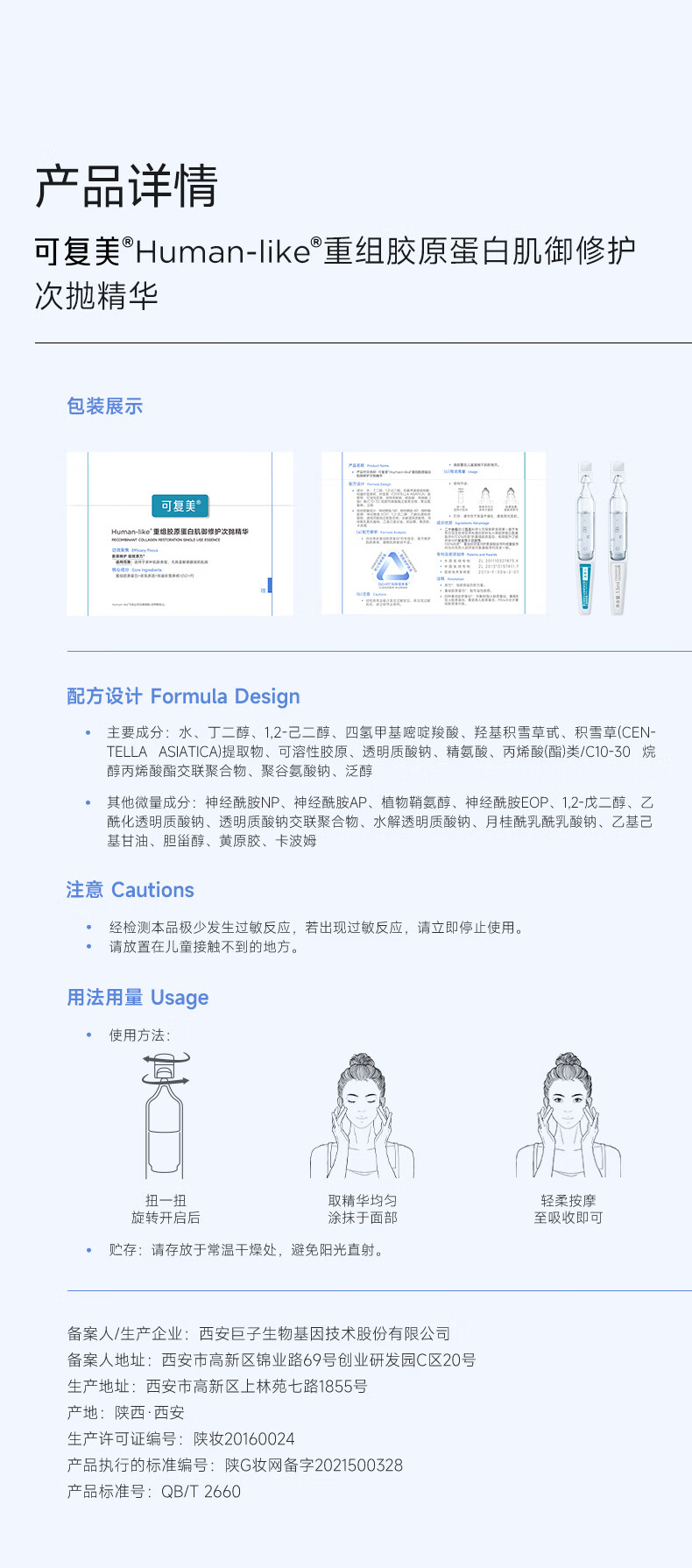 可复美胶原棒Human-like重组胶原蛋白肌御修护次抛精华30支装
