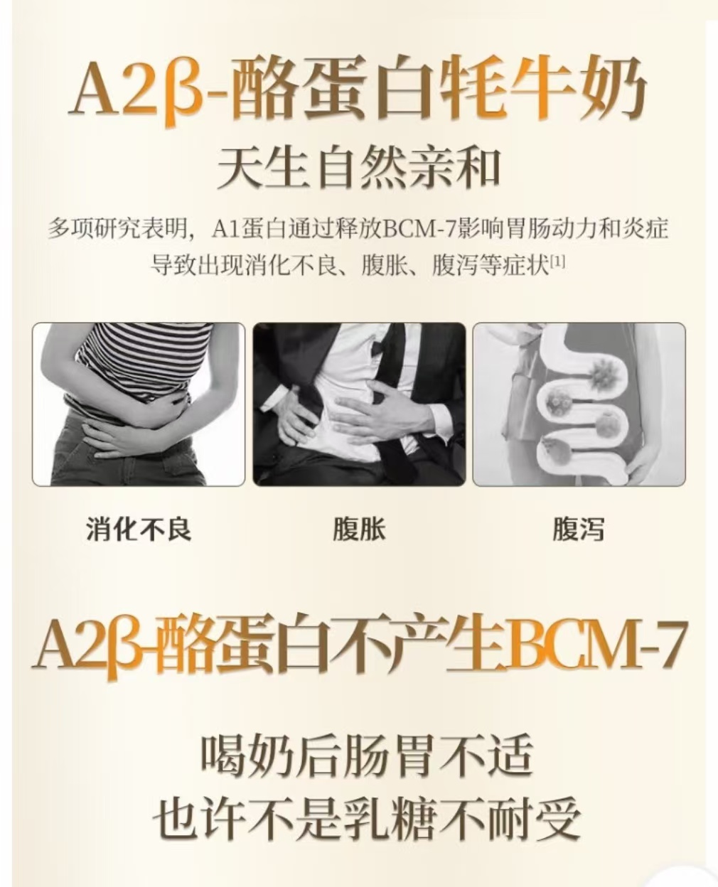 红原牦牛奶含有A2酪蛋白,天然亲和,喝牛奶腹胀、腹泻的朋友也可以试试