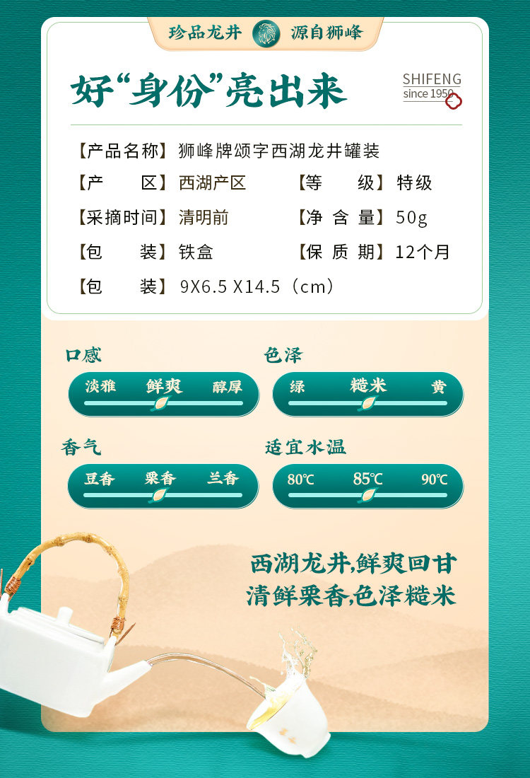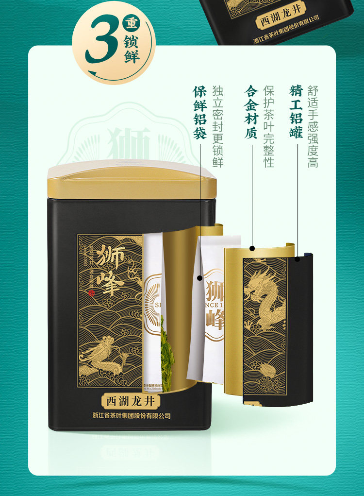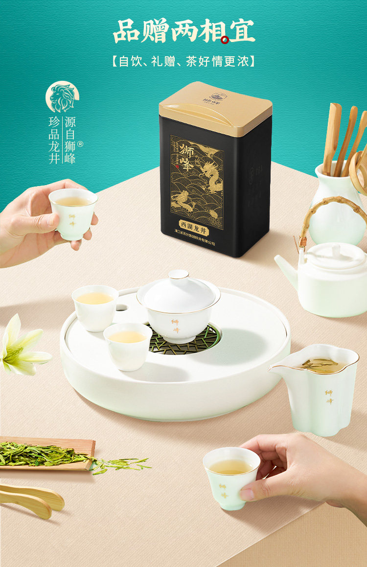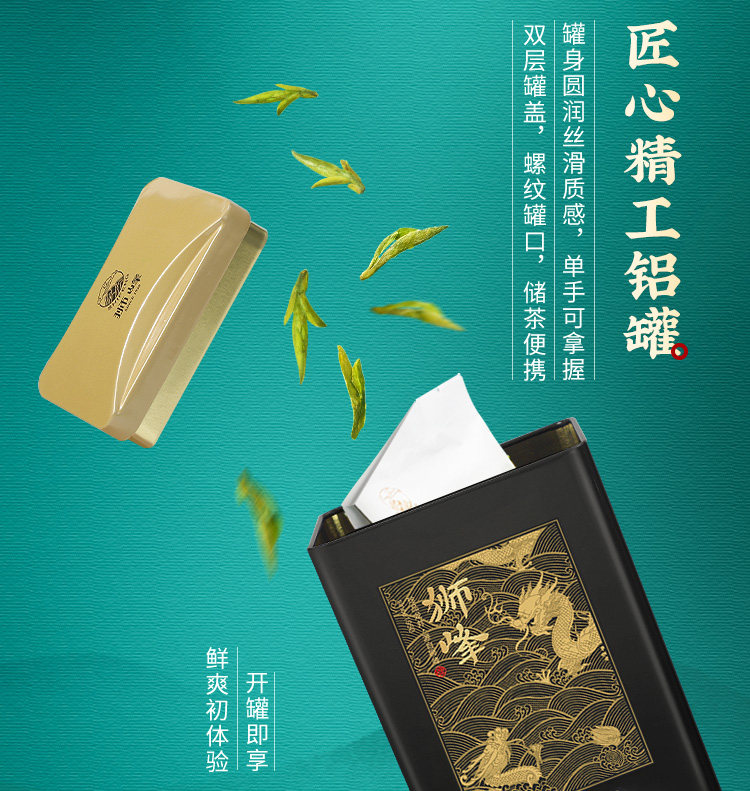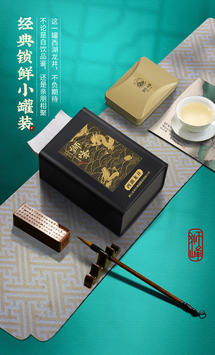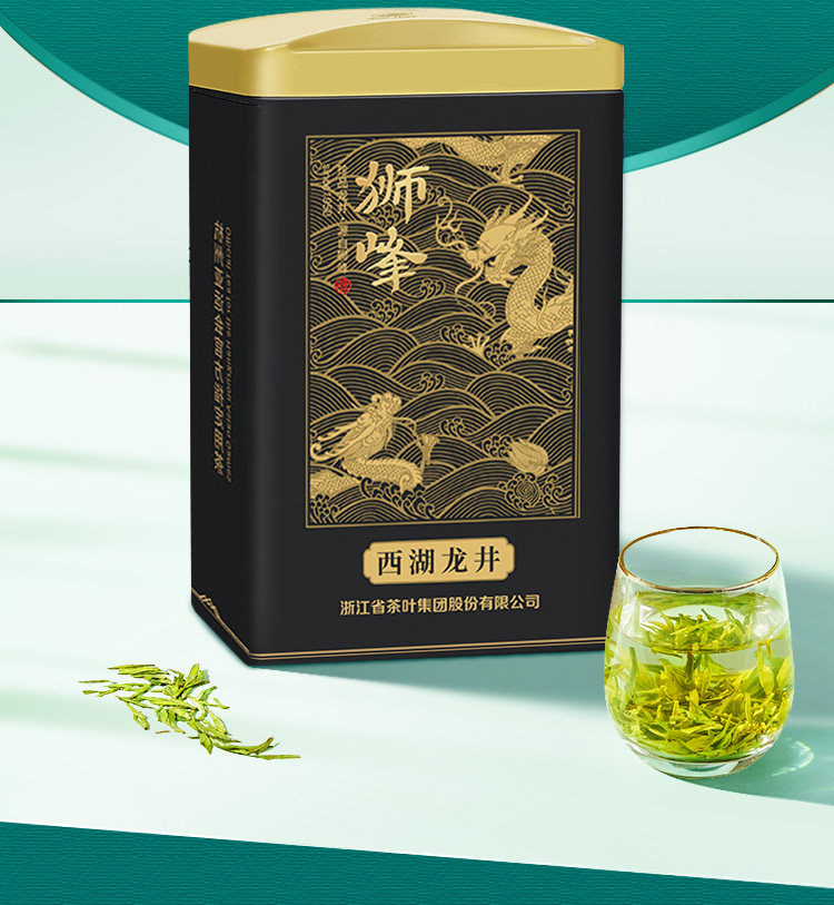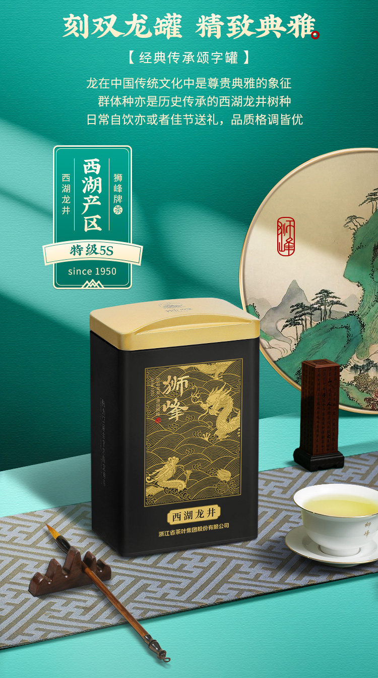 狮峰牌西湖龙井罐装云虎颂梅颂字黑龙50g
