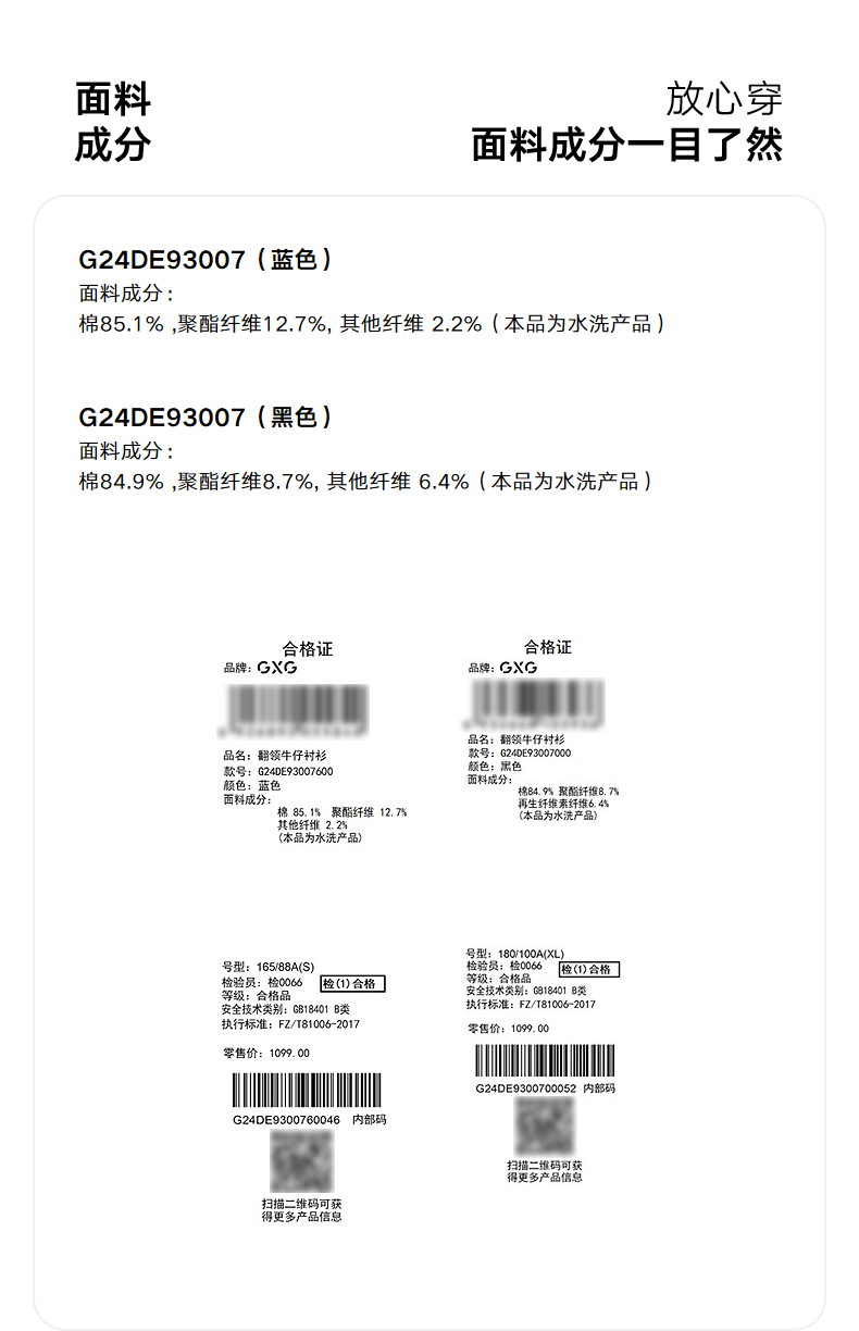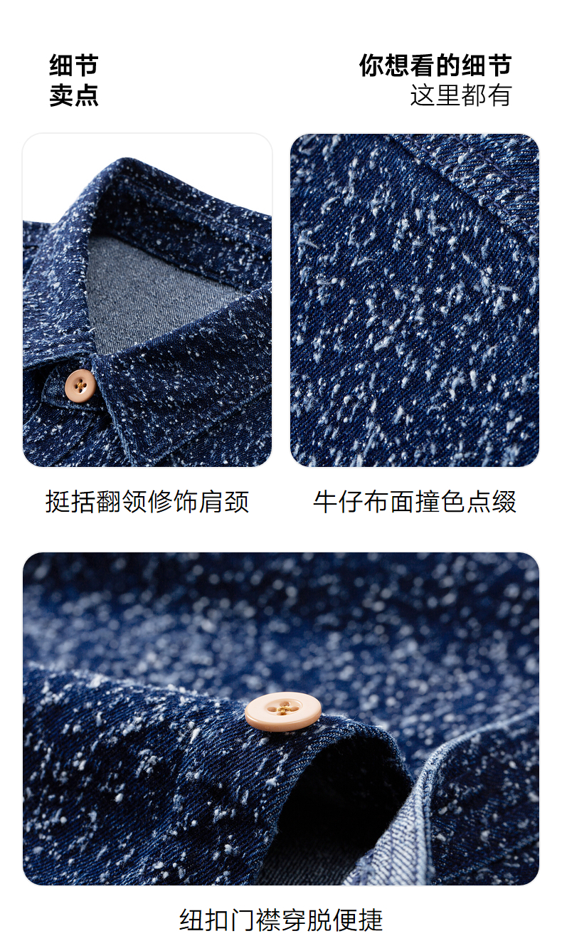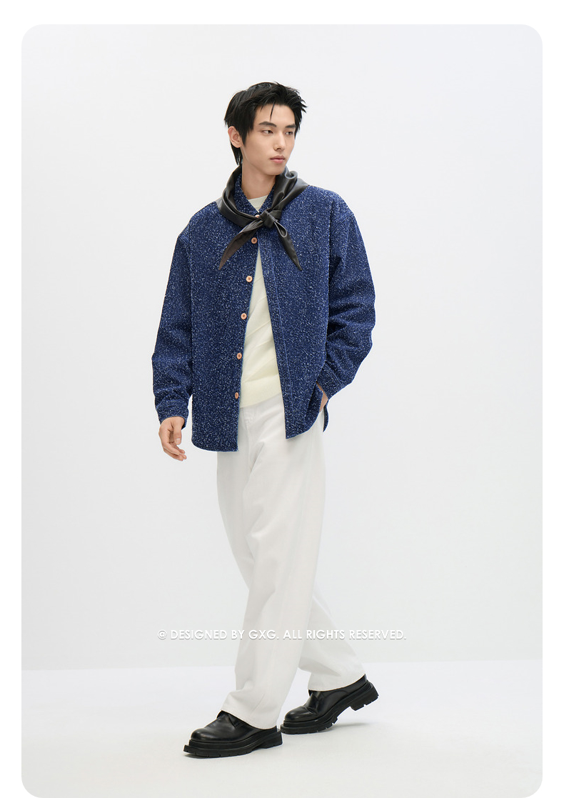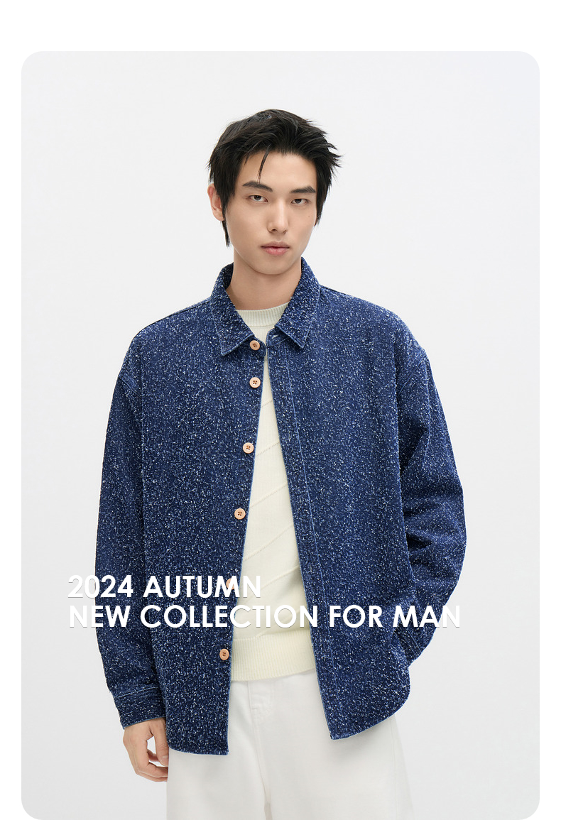 GXG男装 蓝色肌理感水洗长袖牛仔衬衫外套 24秋季热卖#G24DE93007