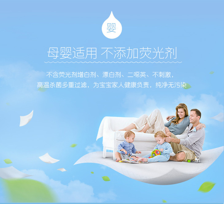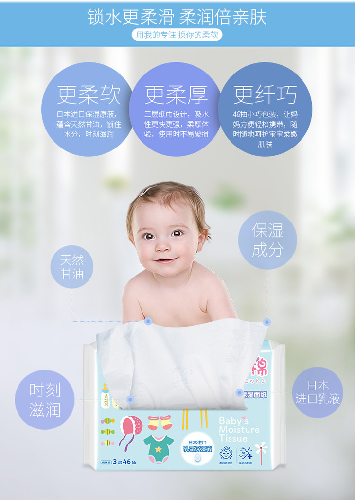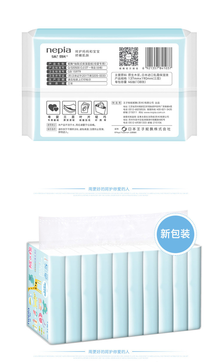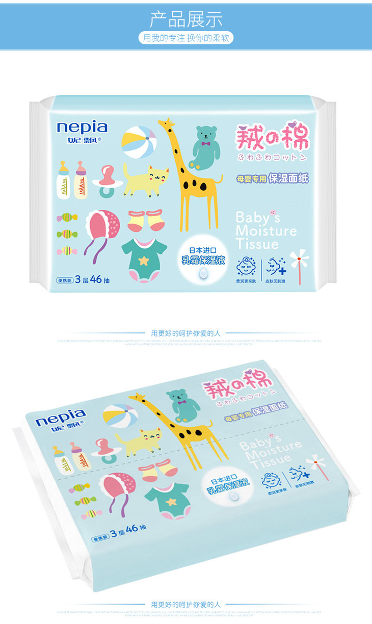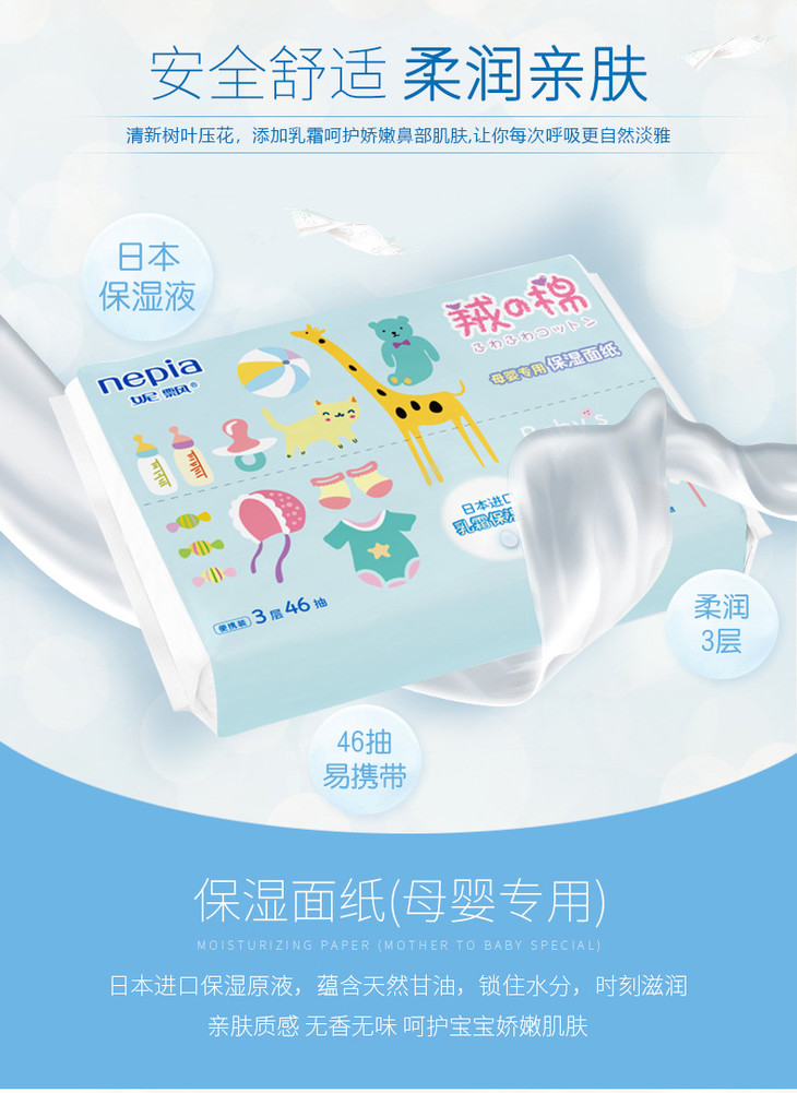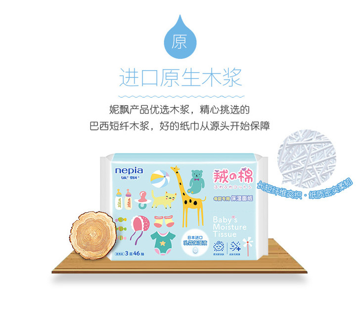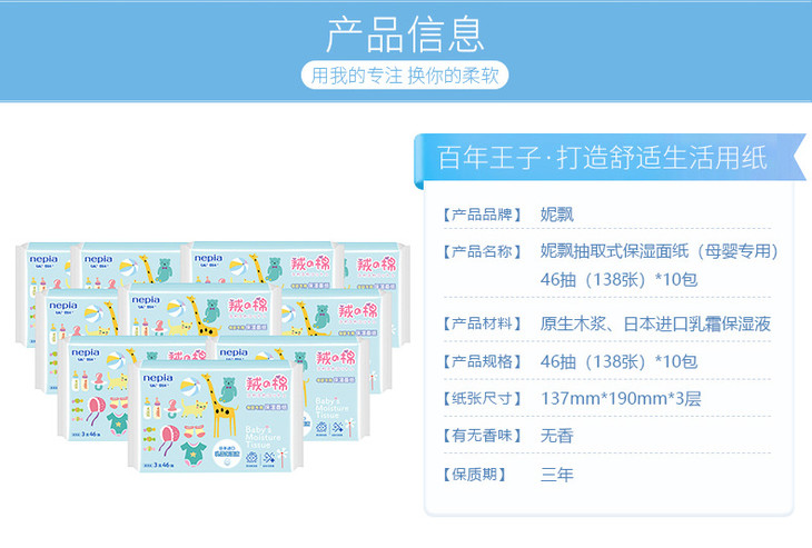 (超值)妮飘抽纸婴儿专用保湿面巾抽纸3层46抽 10包/提