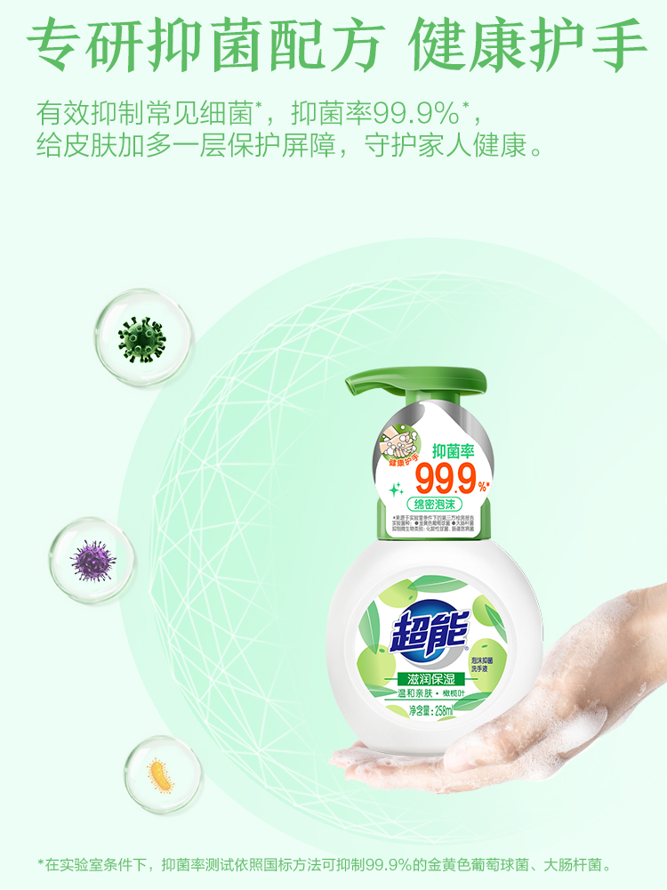超能泡沫抑菌洗手液(滋润保湿)258ml