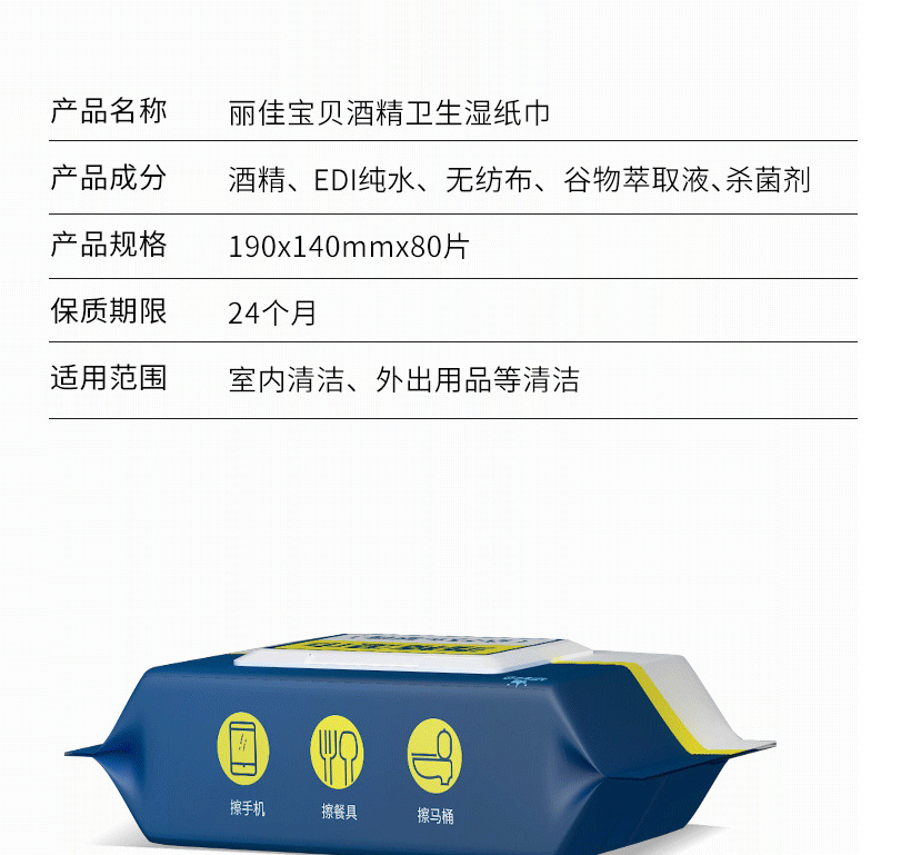丽家宝贝酒精湿巾80抽*2包