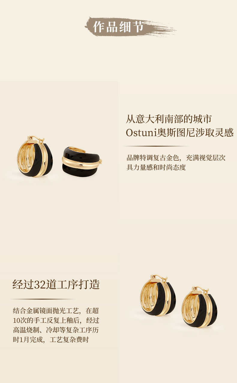 【蓝盈莹、孟慧圆同款】Art Nouveau新艺术时期 | 奥斯黑色珐琅耳圈三件套